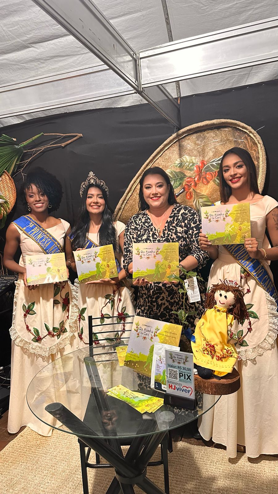 A noite foi marcada por diversas atividades culturais, sendo o lançamento do livro “O Presente da Rainha do Café”, de Lena Oliveira e Gleice Nascimento, o grande destaque. A obra, que envolve a magia da cafeicultura em Minas Gerais, foi recebida com entusiasmo, especialmente pela sua proposta de valorizar a tradição cafeeira e a importância do carinho e dedicação no cultivo do café. O livro é voltado para o público infantojuvenil, buscando envolver as crianças na rica história da região.