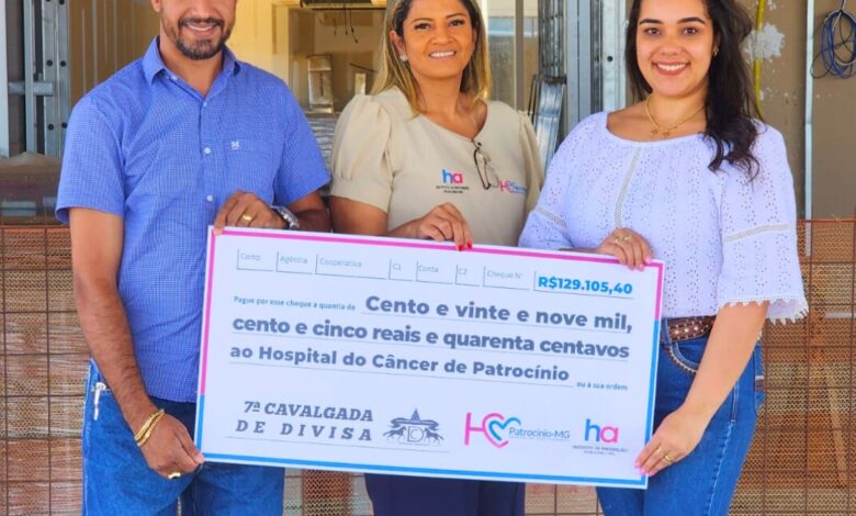 O Hospital do Câncer de Patrocínio (HC Patrocínio) recebeu, nesta segunda-feira (25), o repasse simbólico dos recursos arrecadados durante a 7ª Cavalgada de Divisa, realizada no Haras N.S. Aparecida. O evento, idealizado por Diego Castro, mobilizou centenas de cavaleiros e milhares de visitantes, consolidando-se como um dos maiores atos de solidariedade da região.