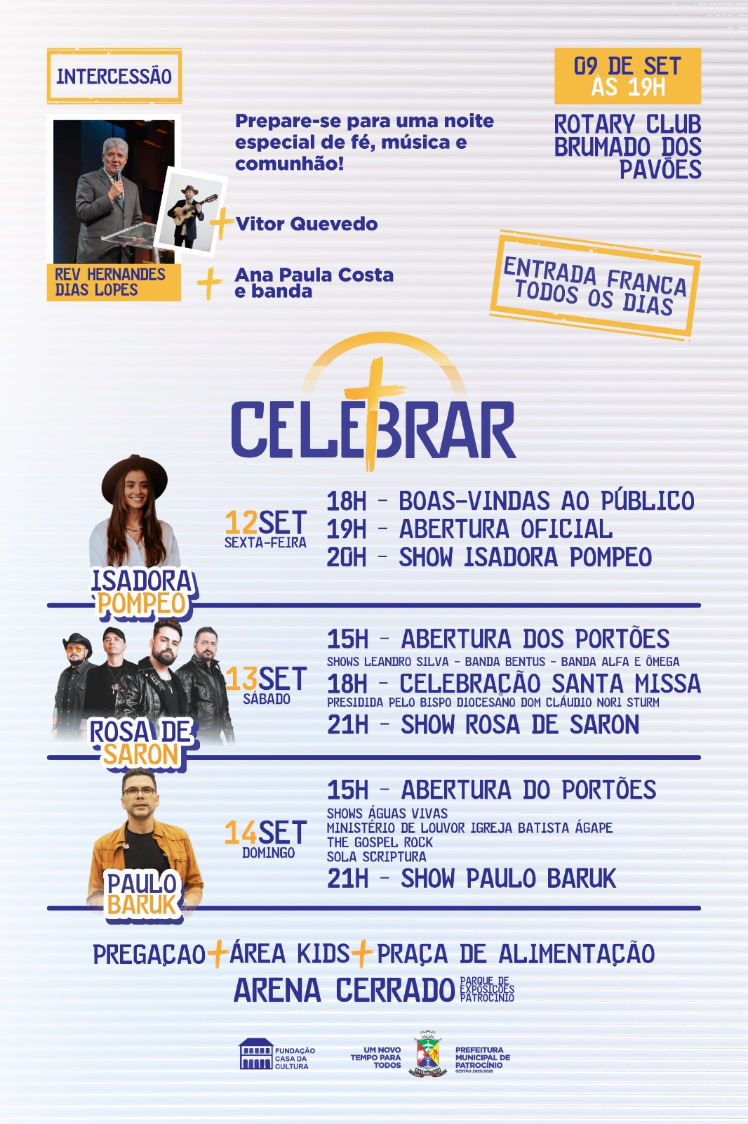 A programação começa em 9 de setembro, às 19h, no Rotary Club Brumado dos Pavões, com intercessão do pastor Hernandes Dias Lopes e participação especial de Vitor Quevedo.
