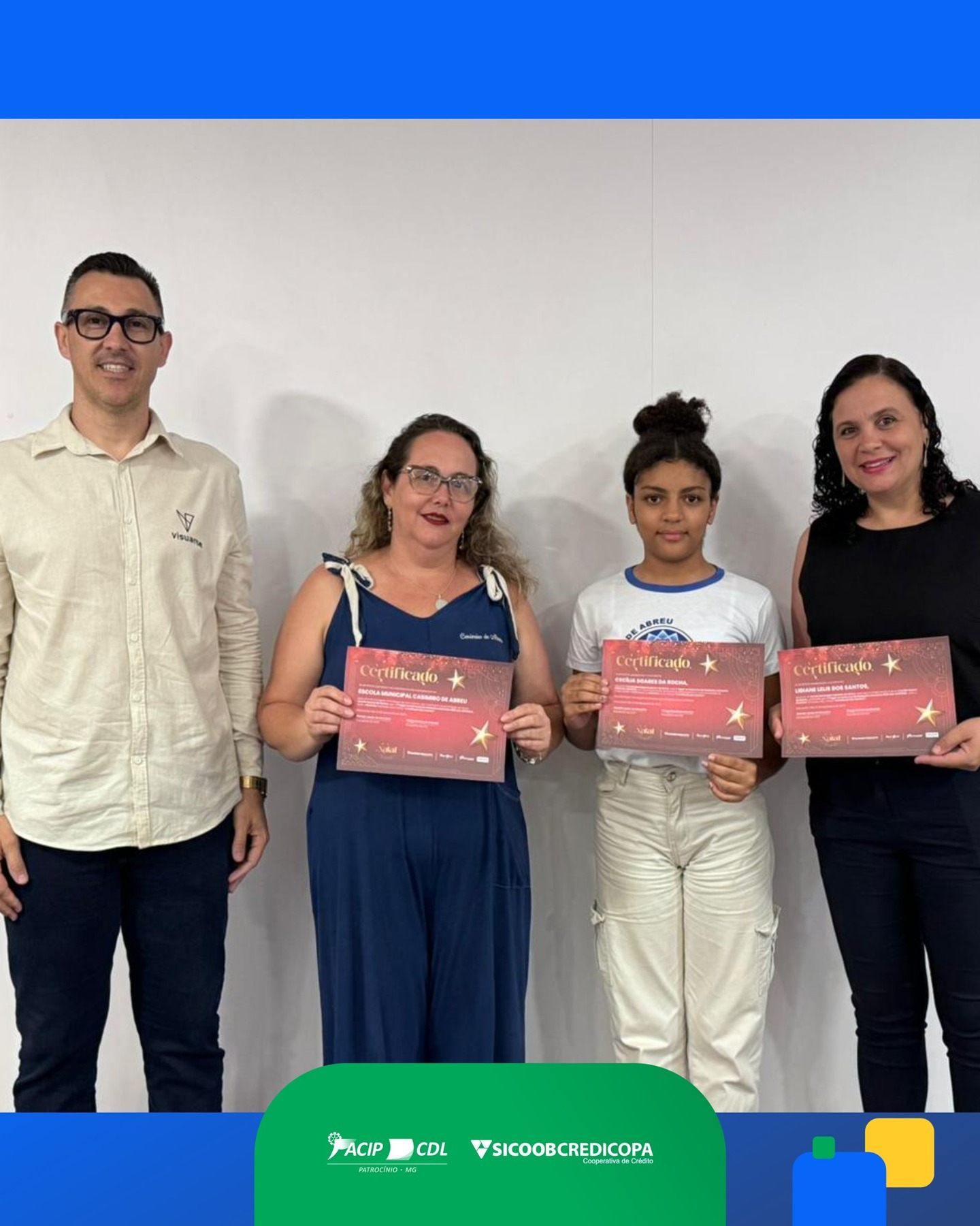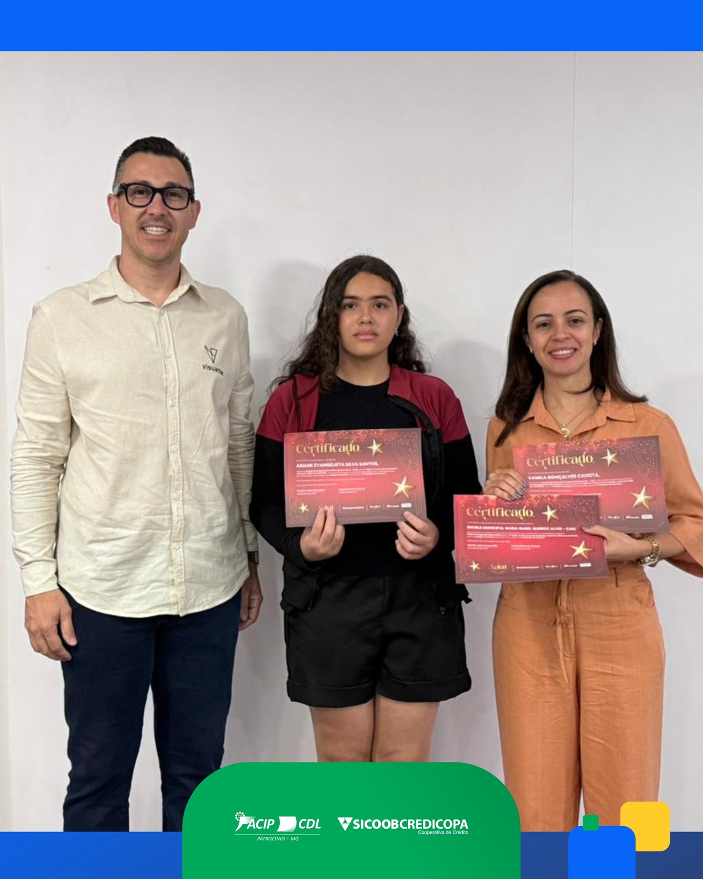 Durante a solenidade, o diretor Diego Magalhães representou as ACIP/CDL e destacou a importância do concurso na formação dos participantes. Ele afirmou que o engajamento dos estudantes confirma o impacto positivo da proposta e reforça a relevância de ações que incentivam a criatividade e a expressão individual.