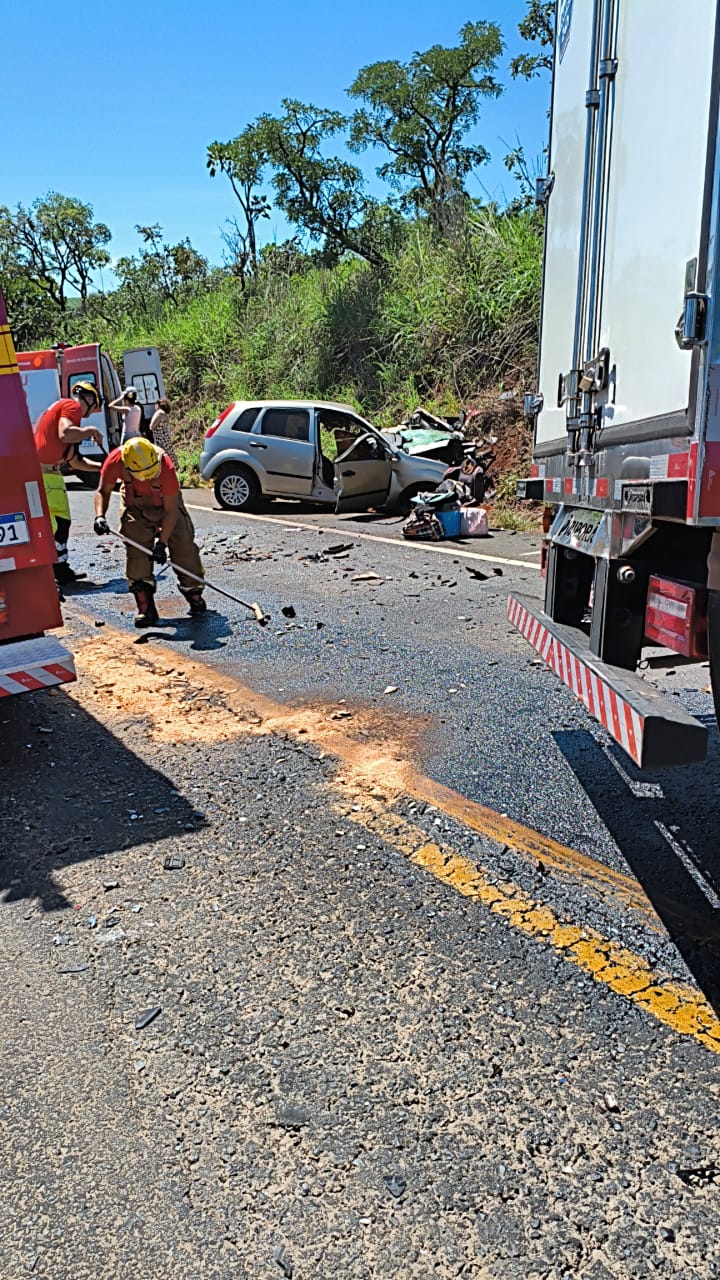 Uma colisão de forte impacto entre um carro de passeio e um caminhão de carga deixou cinco pessoas feridas na manhã desta segunda-feira (29), na MG-187, altura do km 33, em Patrocínio. A batida ocorreu por volta das 8h57 e exigiu atuação conjunta do Corpo de Bombeiros, do Samu e da Polícia Rodoviária Estadual.
