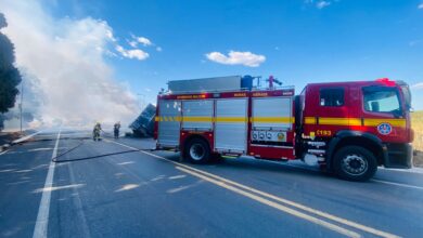 Carreta carregada de batatas congeladas pega fogo na BR-146 em Serra do Salitre