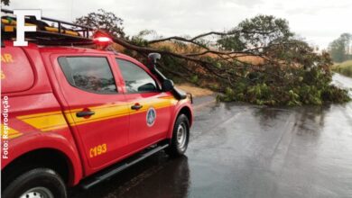 Temporal derruba árvore e bloqueia rodovia MG-230 em Patrocínio