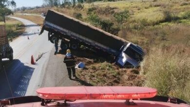 Caminhão perde controle e causa colisão na BR-352 em Carmo do Paranaíba; dois homens ficam feridos