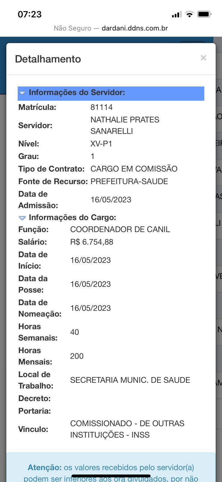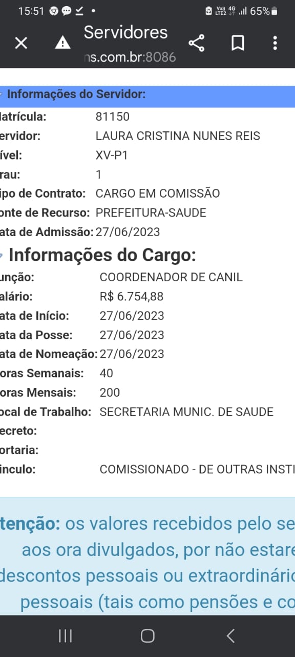 O outro cargo de Coordenador do Canil é de filha de vereadora recém-eleita que estava ligada à saúde.