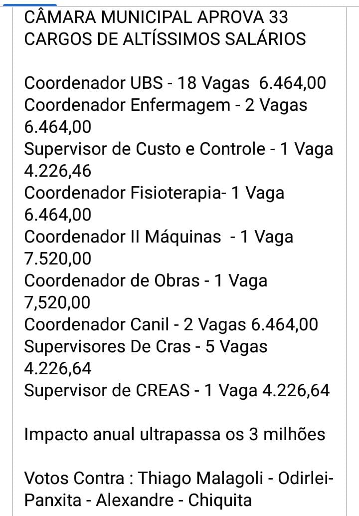 Em mais um episódio de “vamos cuidar dos nossos”, a Câmara Municipal mostrou toda sua generosidade ao aprovar a criação de 33 novos cargos com salários estratosféricos, destinados a apadrinhados políticos e, claro, a filha de um dono de site local.