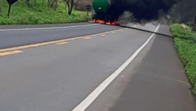Motorista se envolve em acidente em trecho sinuoso da BR-365; fumaça assusta motoristas, pista fica parcialmente interditada e equipes avaliam condições de tráfego.