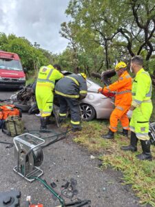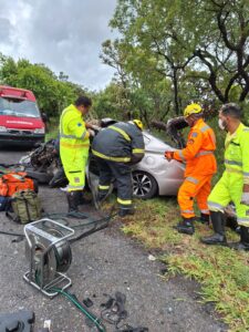 O socorrista Rodrigo e o Médico Gabriel Felipe de Oliveira lideraram os esforços, desencarcerando a vítima presa às ferragens.
