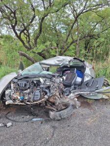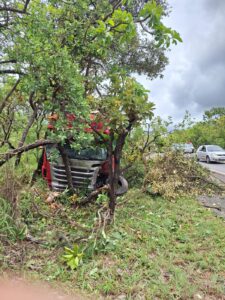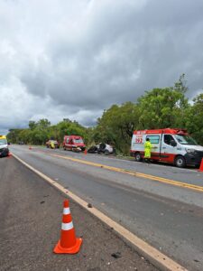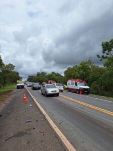 O acidente envolveu uma carreta Scania 420, que se deslocava no sentido Brasília/Sete Lagoas, e um veículo de passeio HB20s prata, que seguia na direção oposta.