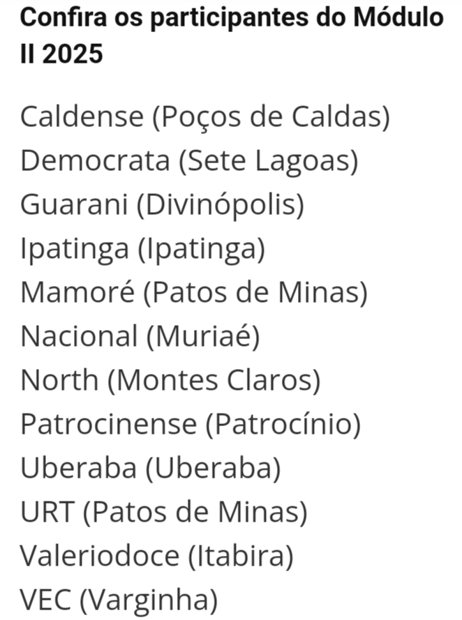 O Módulo II do Campeonato Mineiro 2025 promete movimentar os gramados com 11 equipes na disputa.