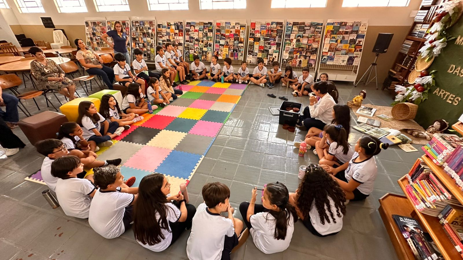 No dia 25, a “Rodinha do Café” encantou o público com narrativas que misturaram literatura e tradições ligadas ao universo cafeeiro, marca da identidade cultural de Patrocínio. As escritoras Giselle Figueiredo de Abreu e Lena Oliveira conduziram a atividade, que incentivou a escuta atenta, a memória afetiva e a valorização da cultura mineira.