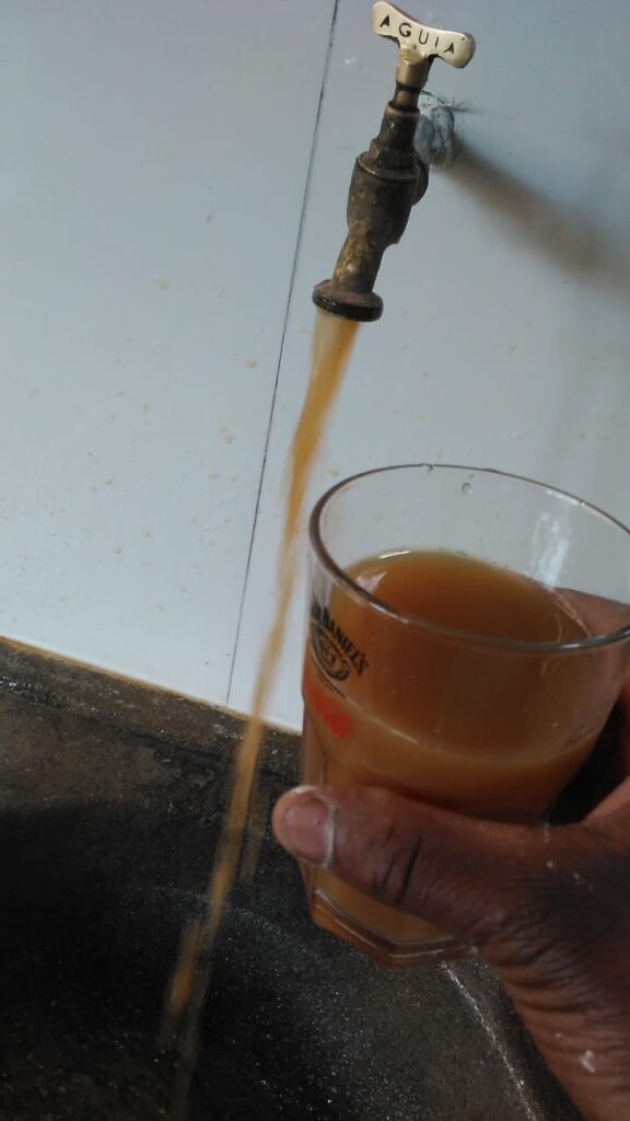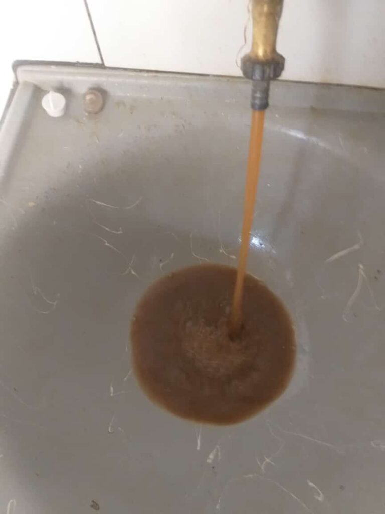 Desta vez, não há água nas torneiras, mas quando há, o barro é abundante.