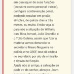 A denúncia cita nomes como William, Iran, Bica, Ismael, João Grande e Túlio, que estariam atuando sem o registro exigido no Conselho Regional de Educação Física (CREF).