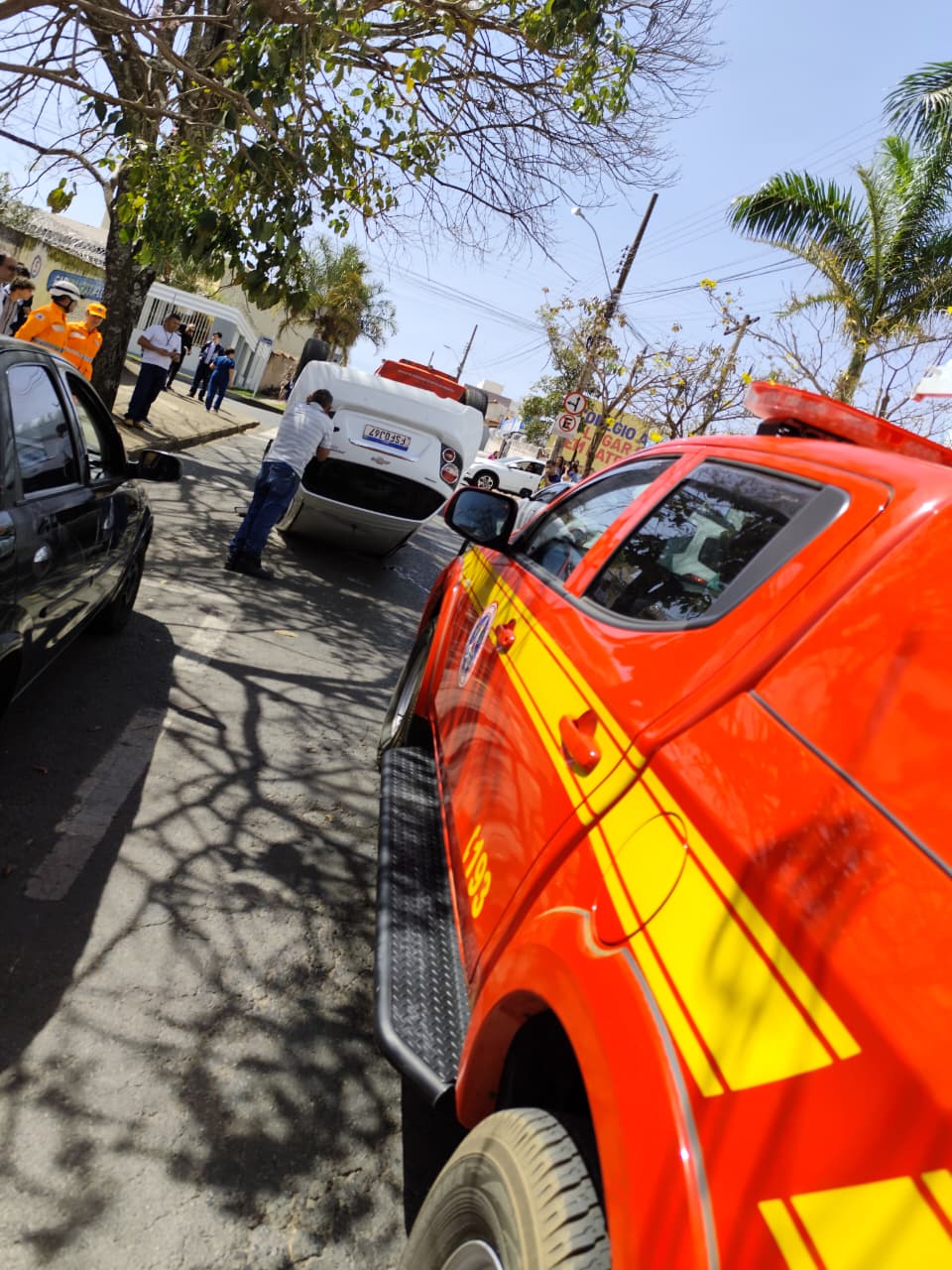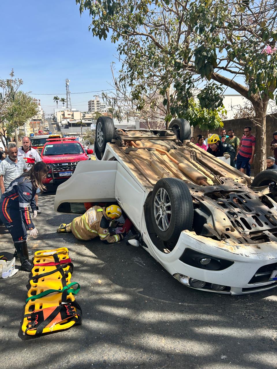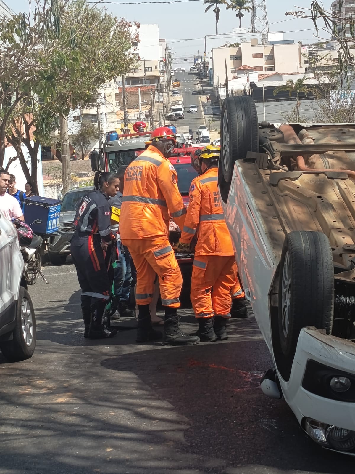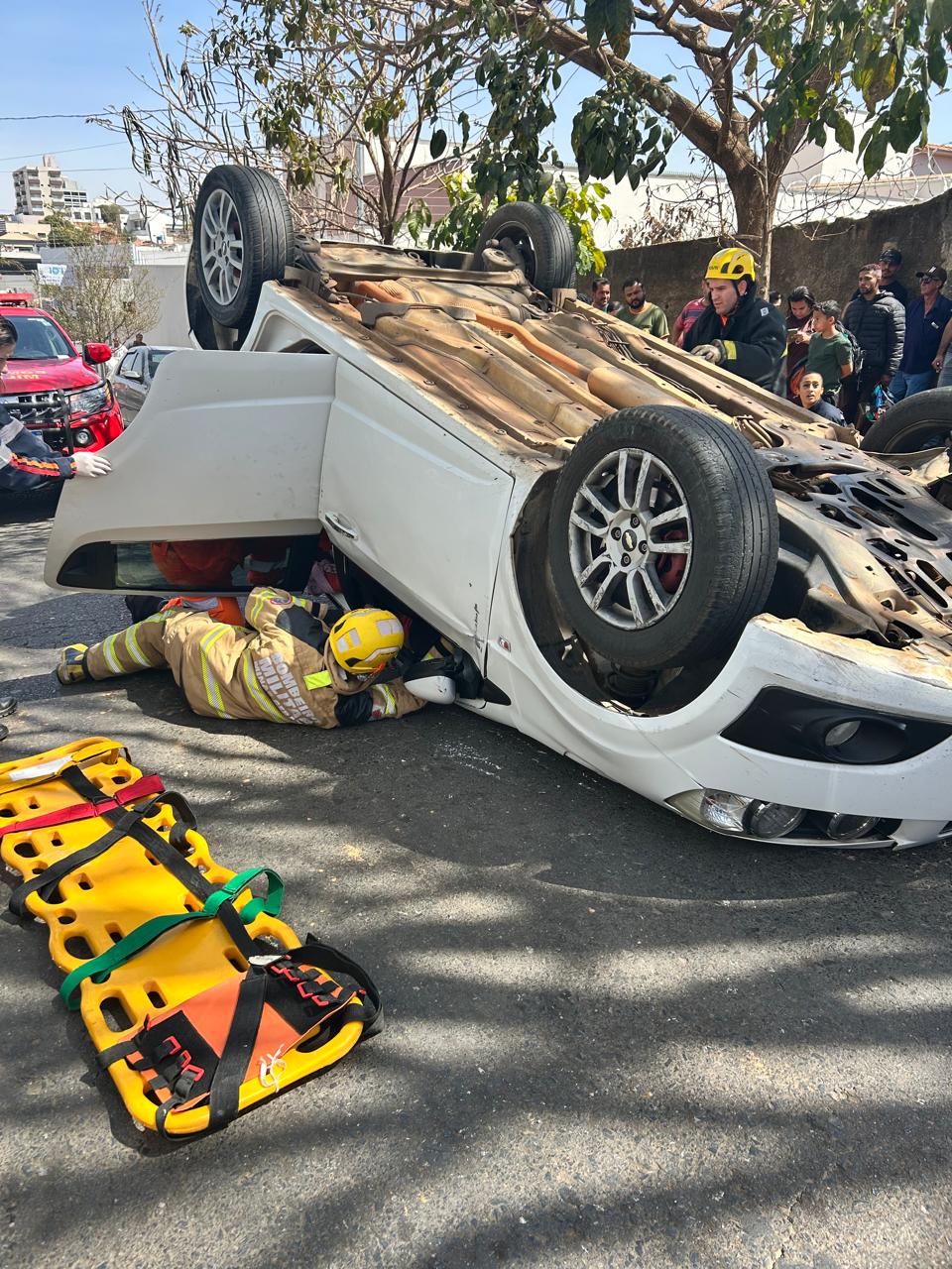 Veículo ocupado por duas mulheres capotou ao lado do Colégio Atenas; Corpo de Bombeiros, SAMU e Polícia Militar atuaram no resgate e atendimento das vítimas