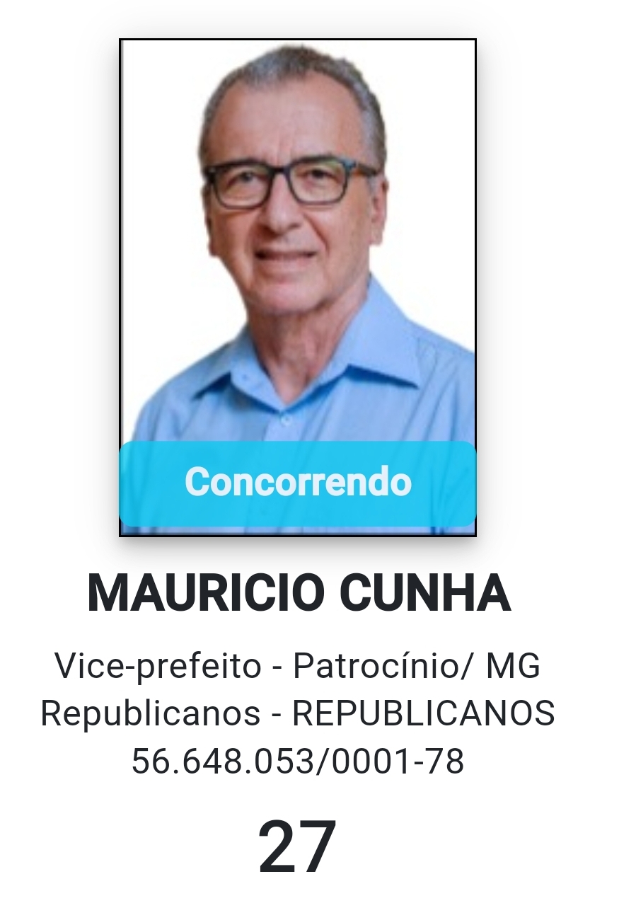 Ele se apresenta como candidato pelo partido Democracia Cristã (DC), disposto a usar sua experiência e habilidades para promover um futuro melhor para Patrocínio.