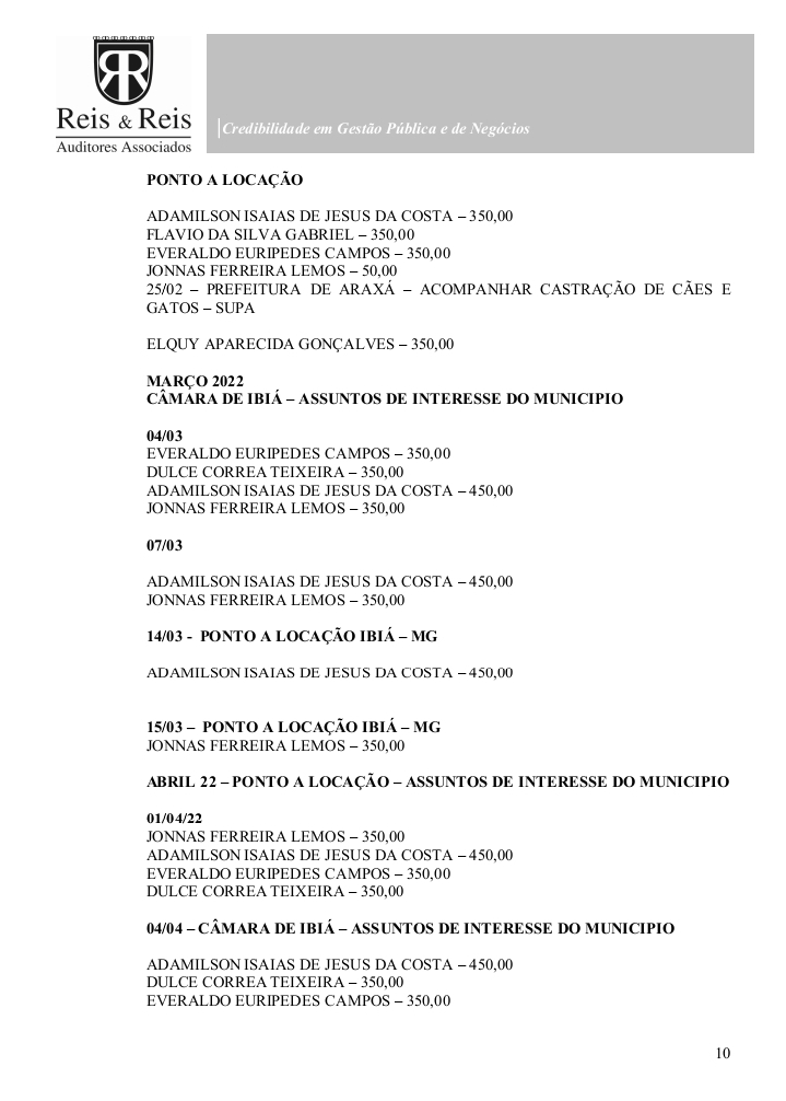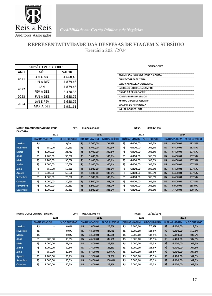O principal foco do relatório recai sobre as diárias de viagem. Segundo os auditores, verbas de natureza estritamente indenizatória passaram a ser utilizadas de forma recorrente como mecanismo indireto de complementação do subsídio mensal de vereadores.