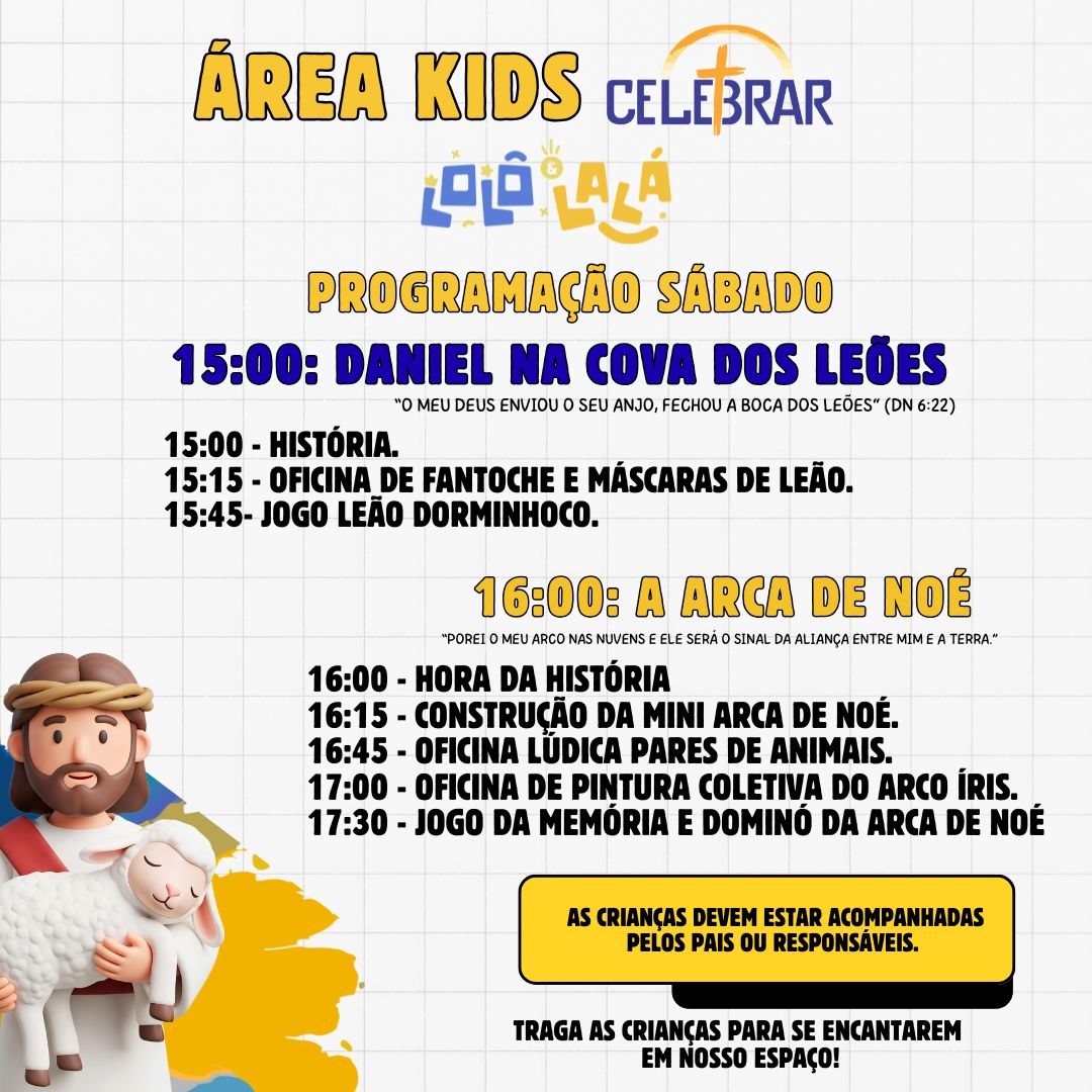 A Lolô & Lalá marca presença com uma área kids dedicada às crianças, oferecendo oficinas de evangelização que estimulam o aprendizado e a participação ativa dos pequenos.