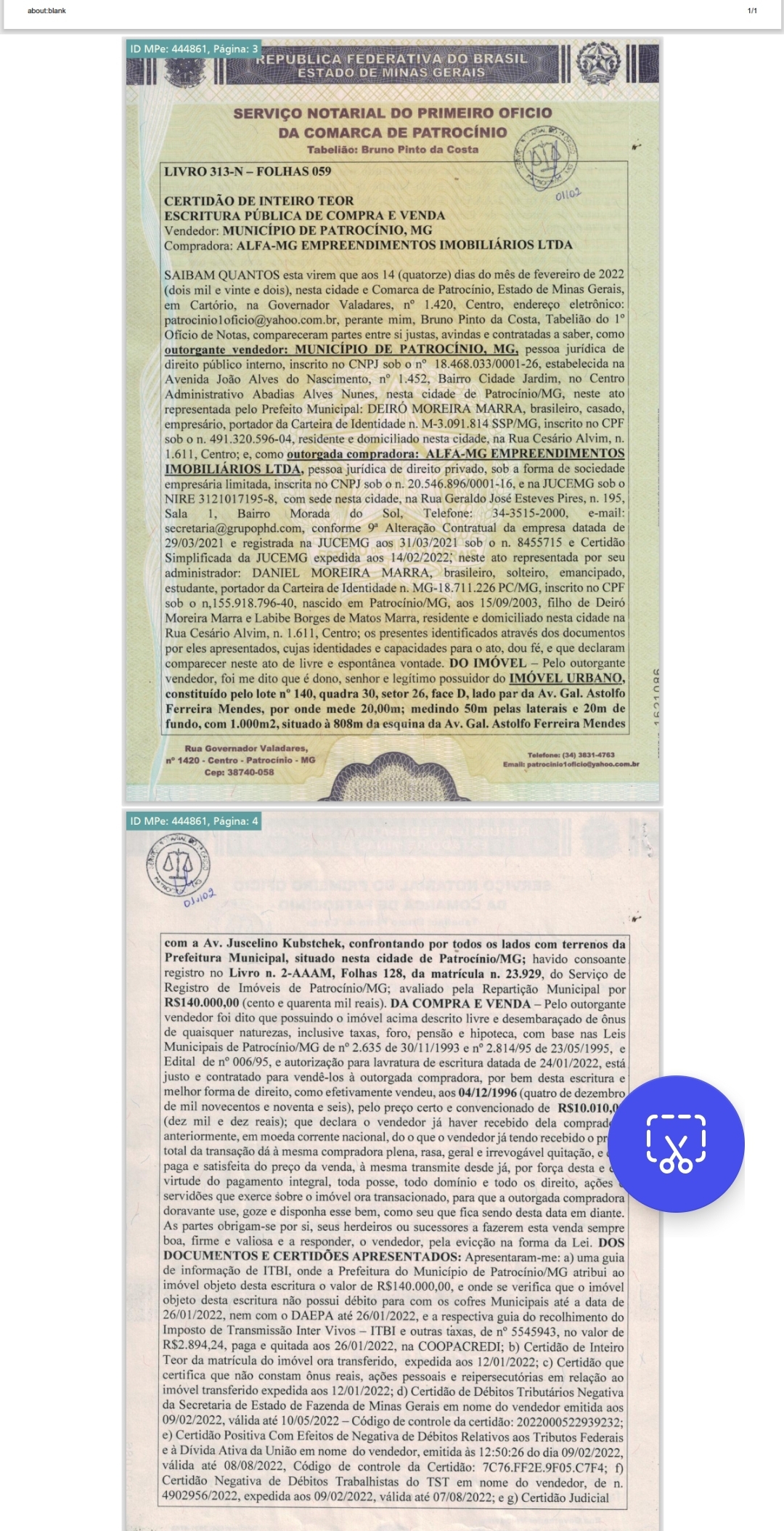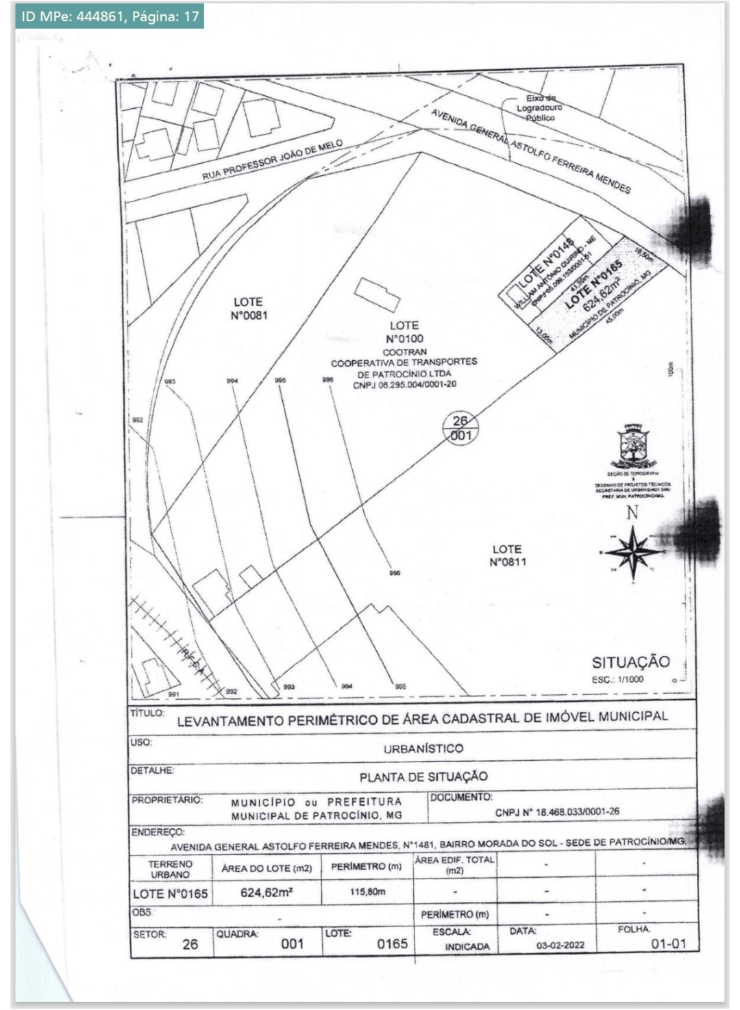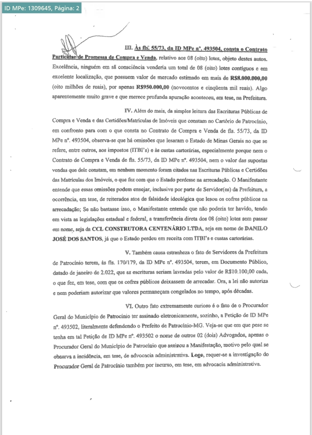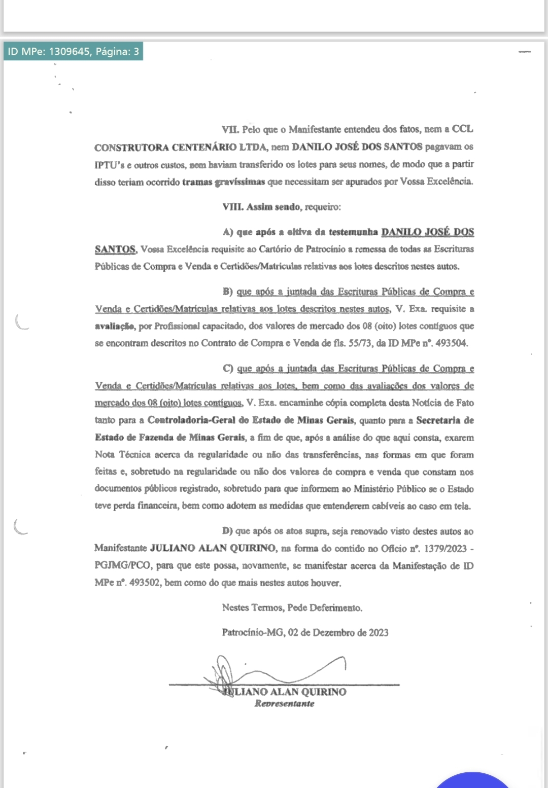 O Tabelionato de Uberlândia, por meio de investigações conduzidas pelo GAECO (Grupo de Atuação Especial de Combate ao Crime Organizado) de Uberlândia e pela Procuradoria de Crimes contra Prefeitos, confirmou a falsificação de uma procuração utilizada para a compra de lotes na Avenida General Astolfo, onde estão localizados oito galpões ligados à família do atual prefeito de Patrocínio.