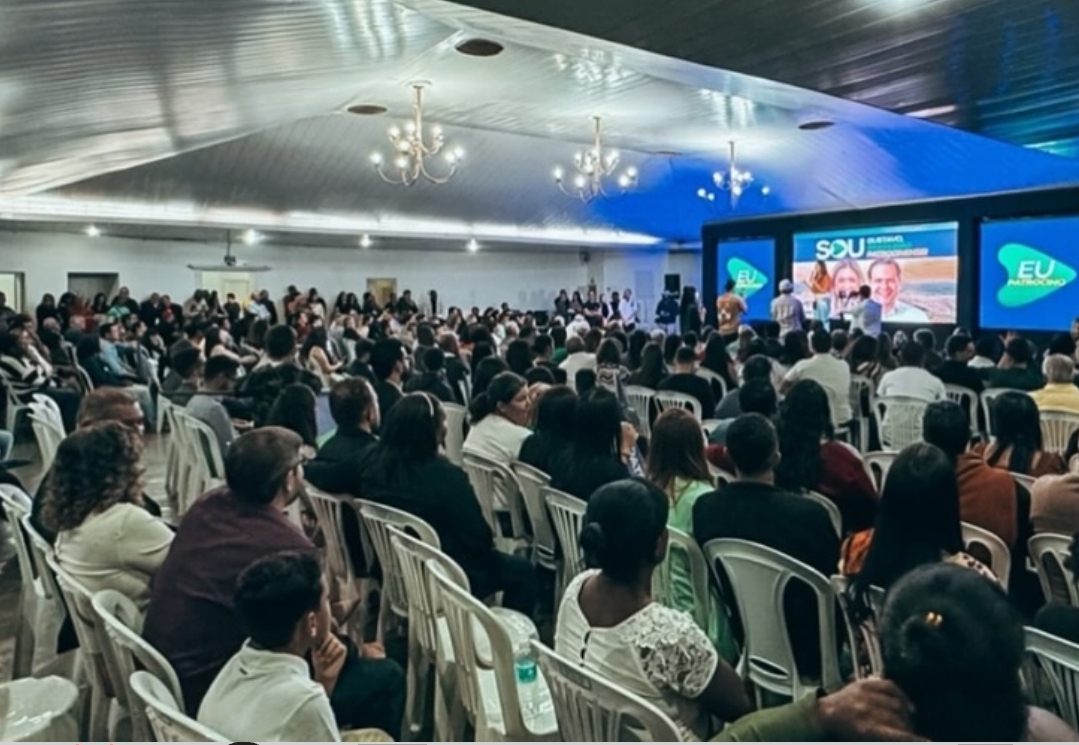 Convenção partidária reúne cerca de 600 a 700 pessoas no Lions Clube Lilia Brandão e conta com a presença da deputada federal Greyce Elias, que destaca a importância de uma gestão comprometida para atrair verbas ao município.