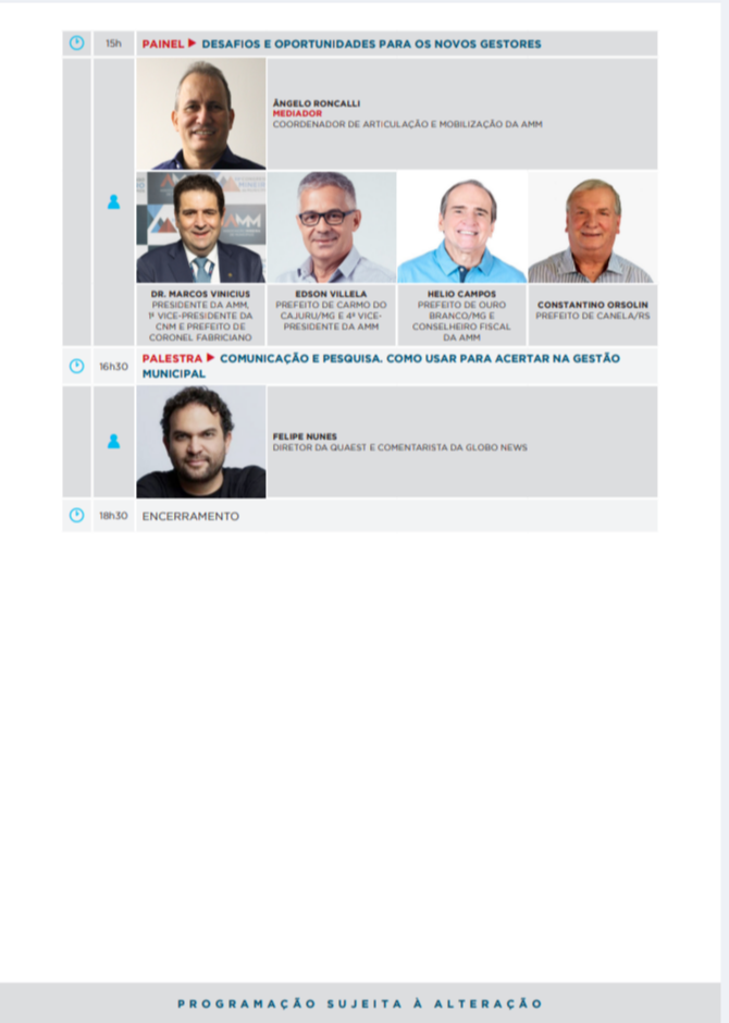 Durante o Congresso, Gustavo e os demais prefeitos terão acesso a palestras e painéis sobre liderança, governança compartilhada, sustentabilidade e novas fontes de receita para as prefeituras, assuntos essenciais para que ele comece sua gestão com tudo.