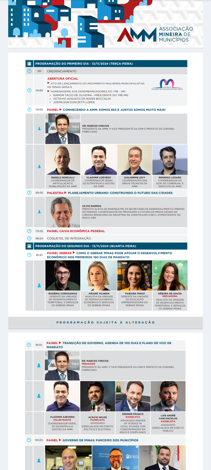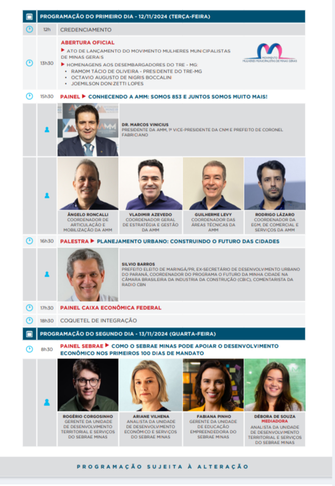 A abertura oficial, que acontece no dia 11 de novembro, marcará o lançamento do Movimento Mulheres Municipalistas de Minas Gerais, incentivando a presença feminina nas prefeituras.