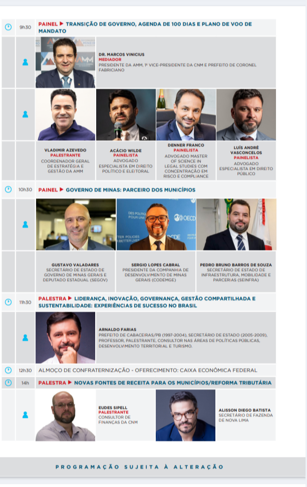 Durante o Congresso, Gustavo e os demais prefeitos terão acesso a palestras e painéis sobre liderança, governança compartilhada, sustentabilidade e novas fontes de receita para as prefeituras, assuntos essenciais para que ele comece sua gestão com tudo.