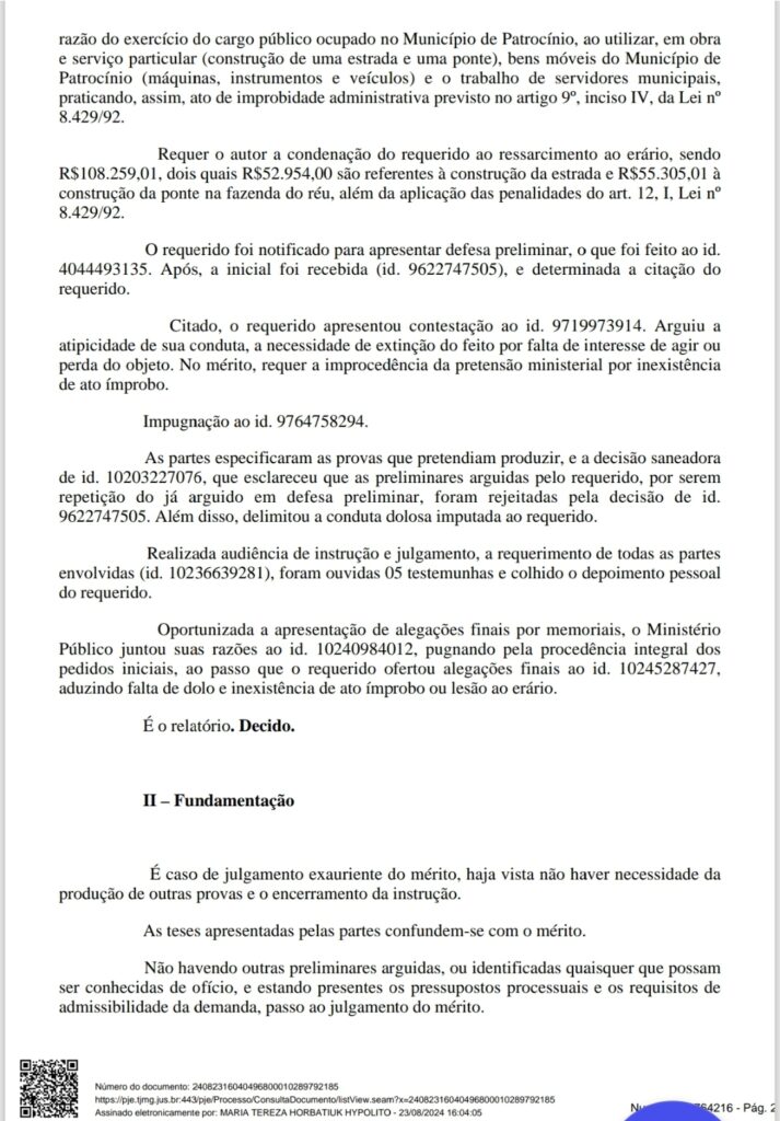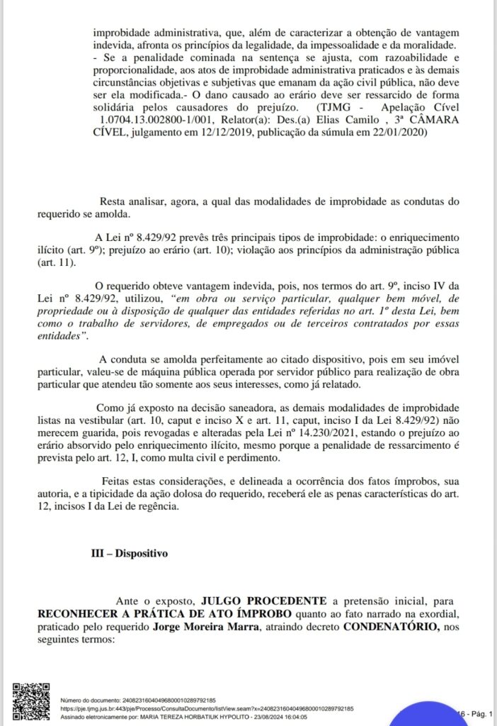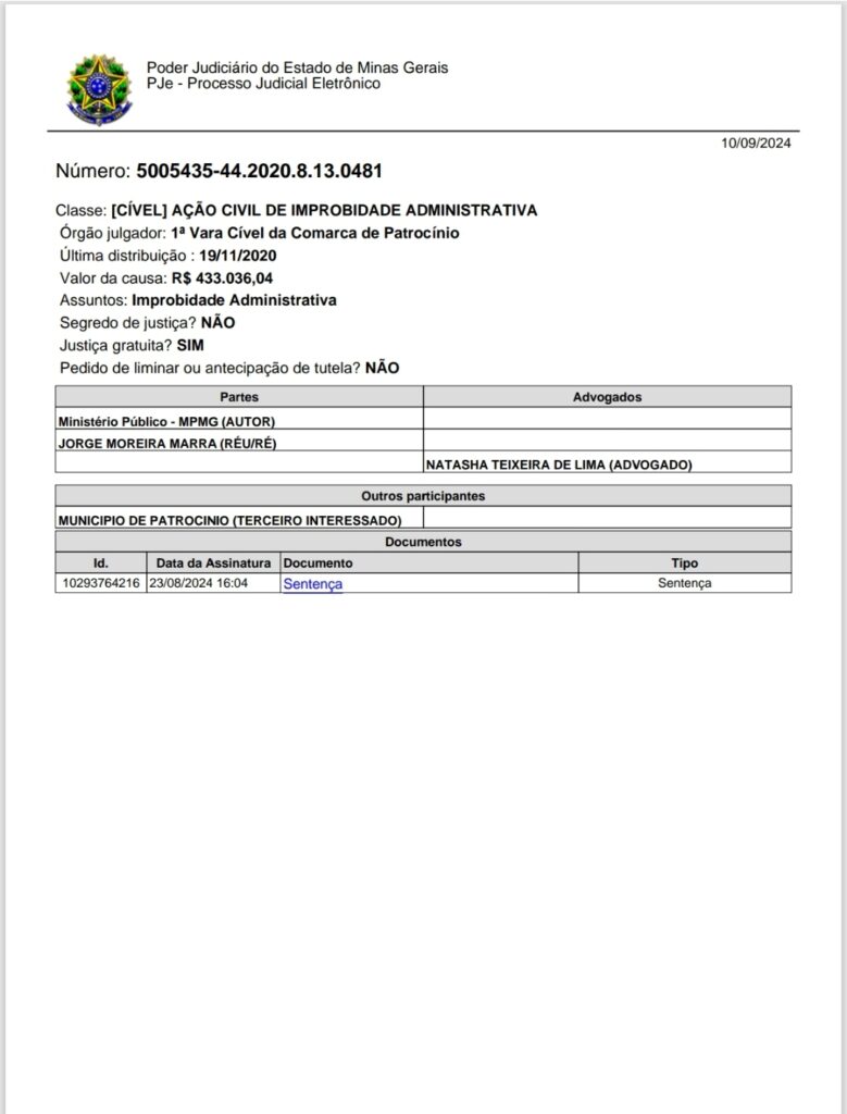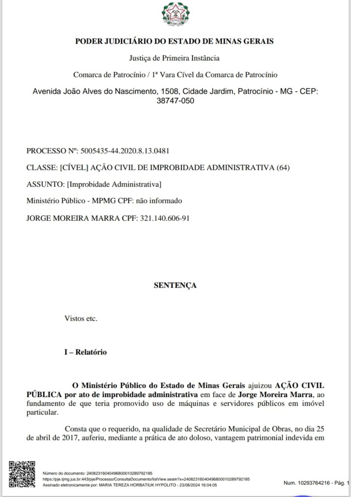 A condenação de Jorge Marra só reforça algo que todo mundo em Patrocínio já sabia: quando o poder sobe à cabeça, tem gente que acha que o serviço público é, na verdade, o seu serviço pessoal.