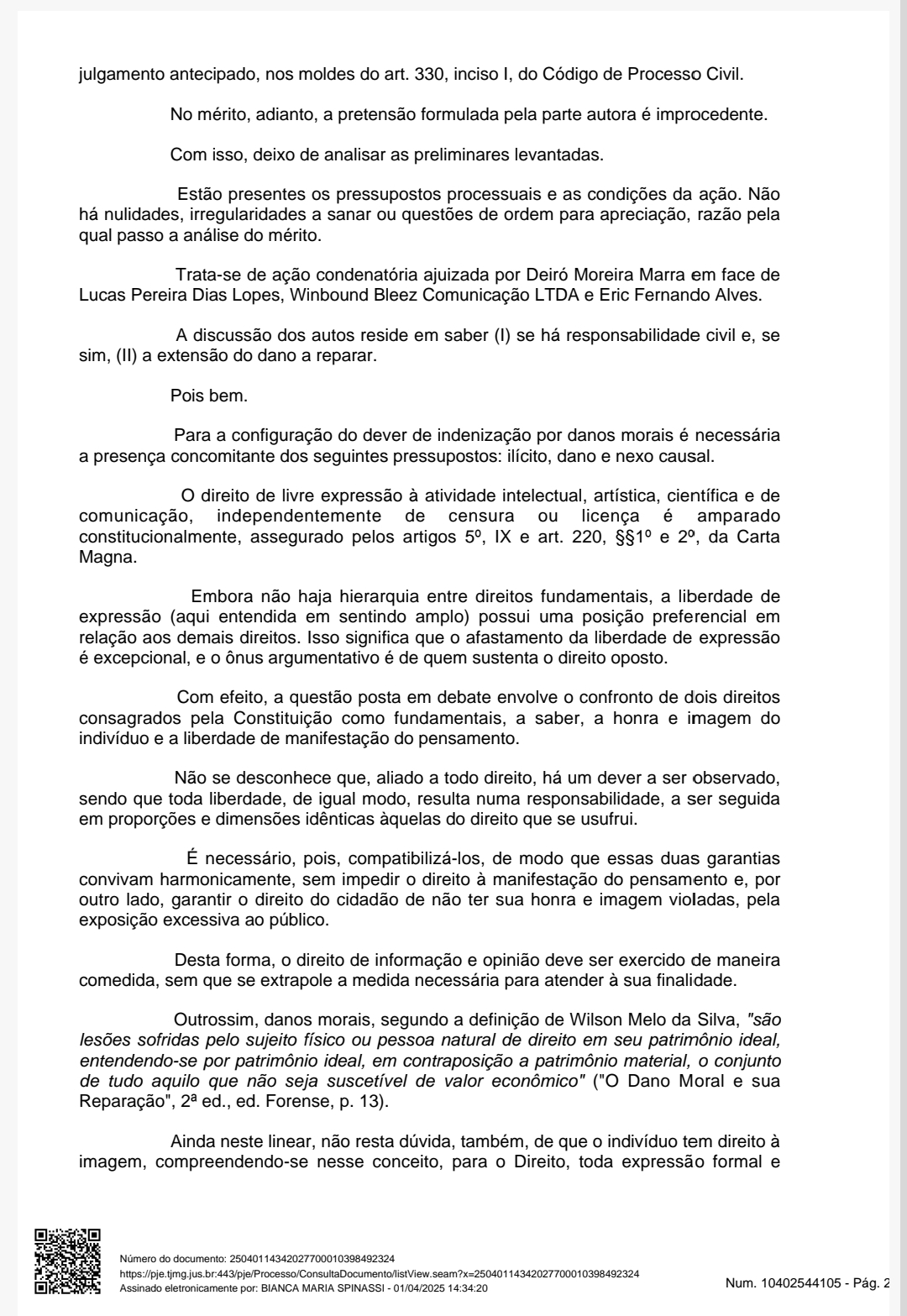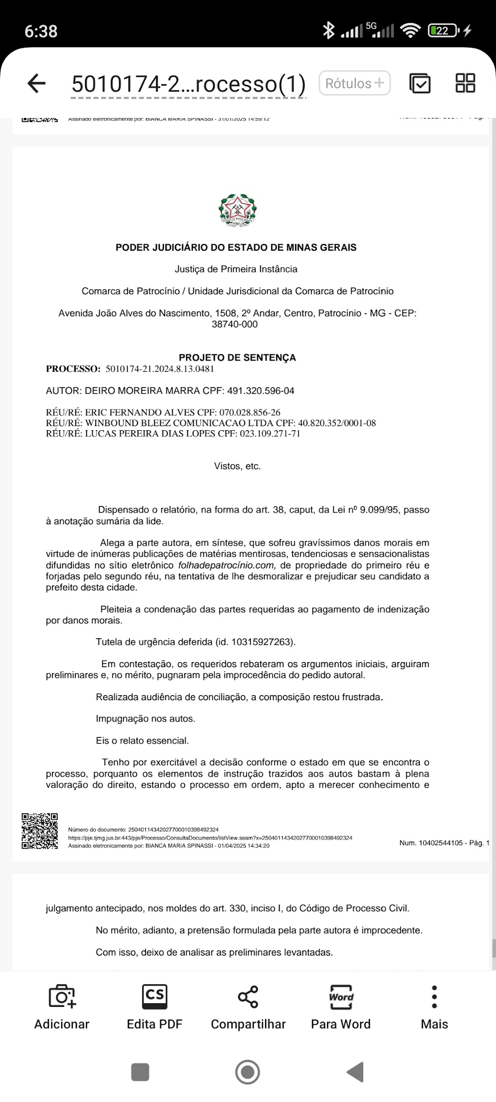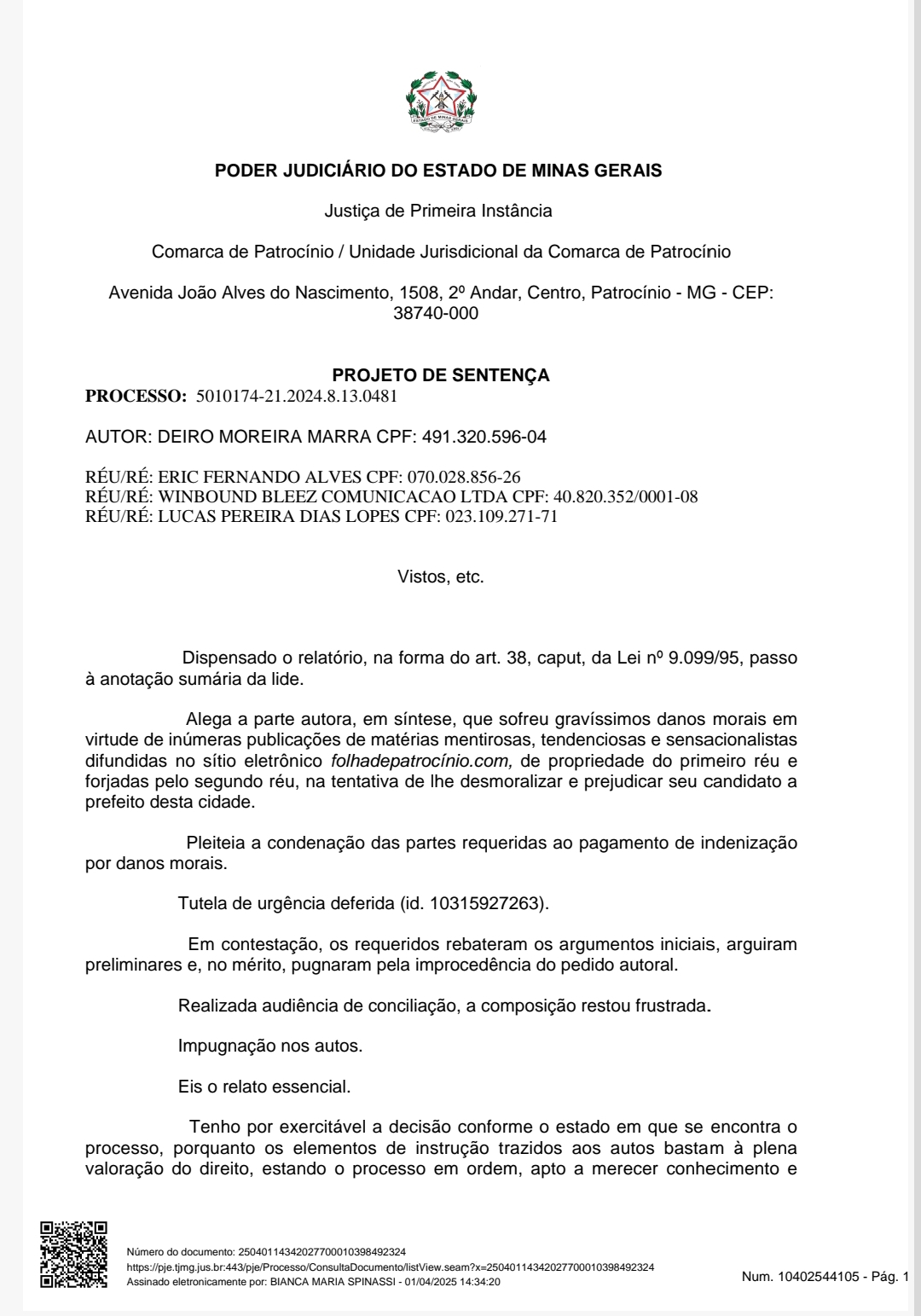 Com a sentença, Deiró sai derrotado e o site Folha de Patrocínio mantém seu direito de publicar reportagens investigativas sobre a administração municipal.