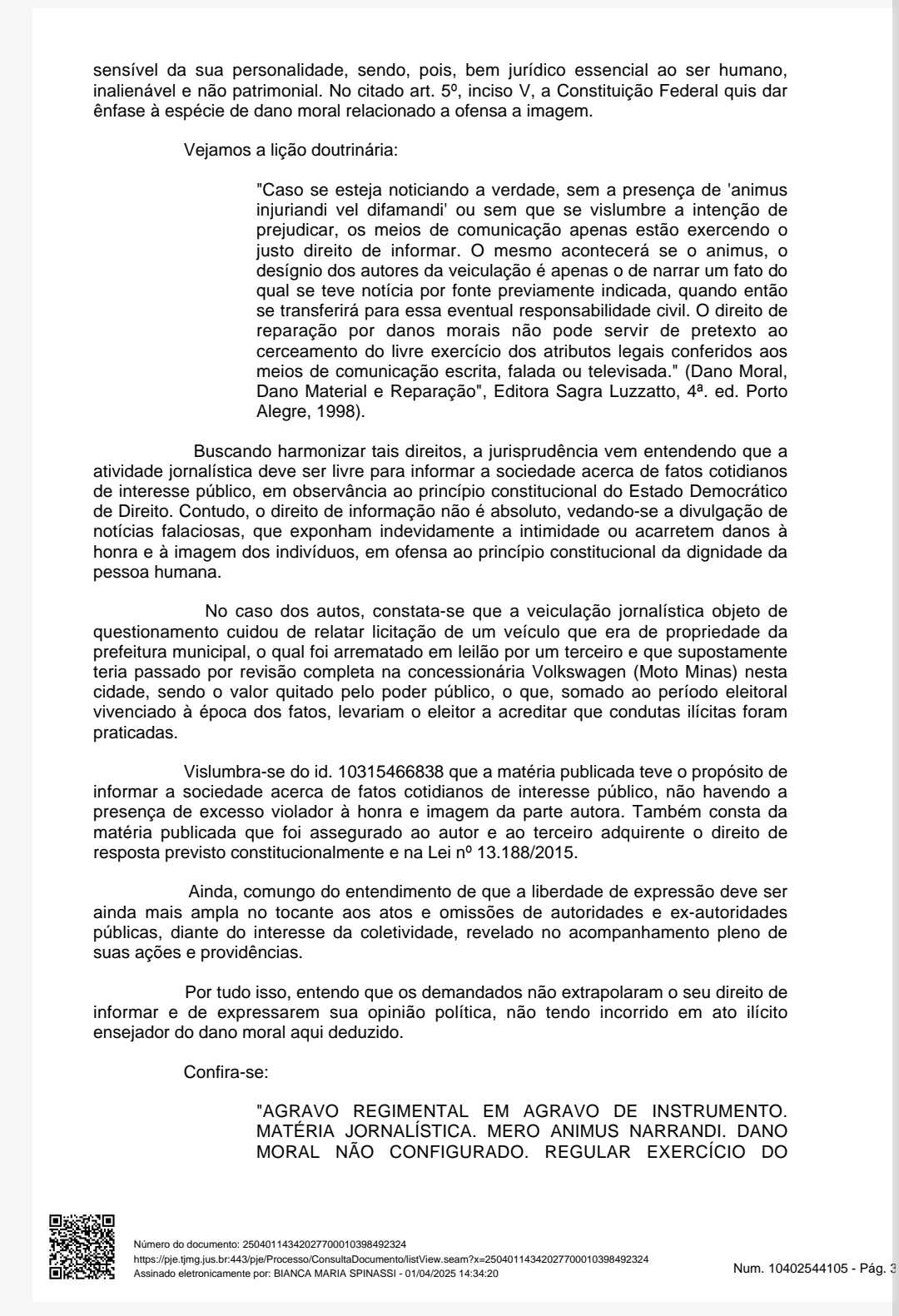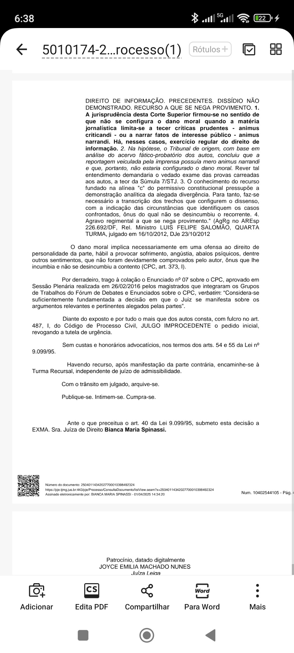 Bom dia! Desculpe se não fui educado. Eu coloquei todas as decisões para comparativo, tanto de 2024 quanto a decisão da Juíza.