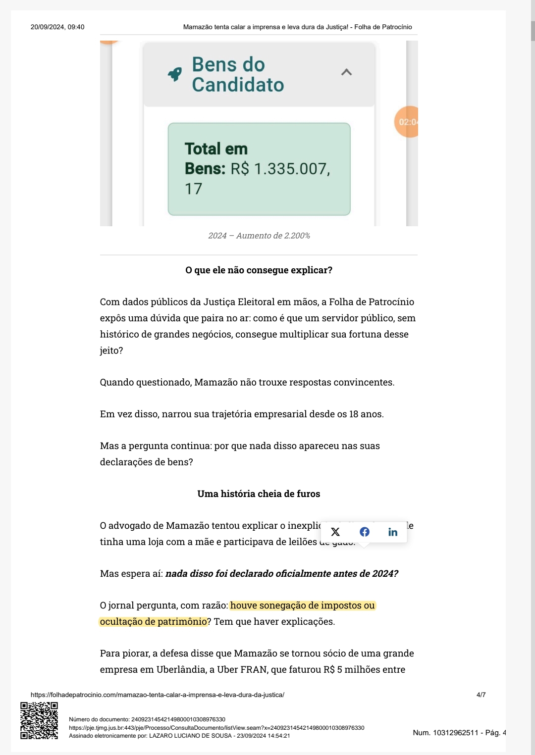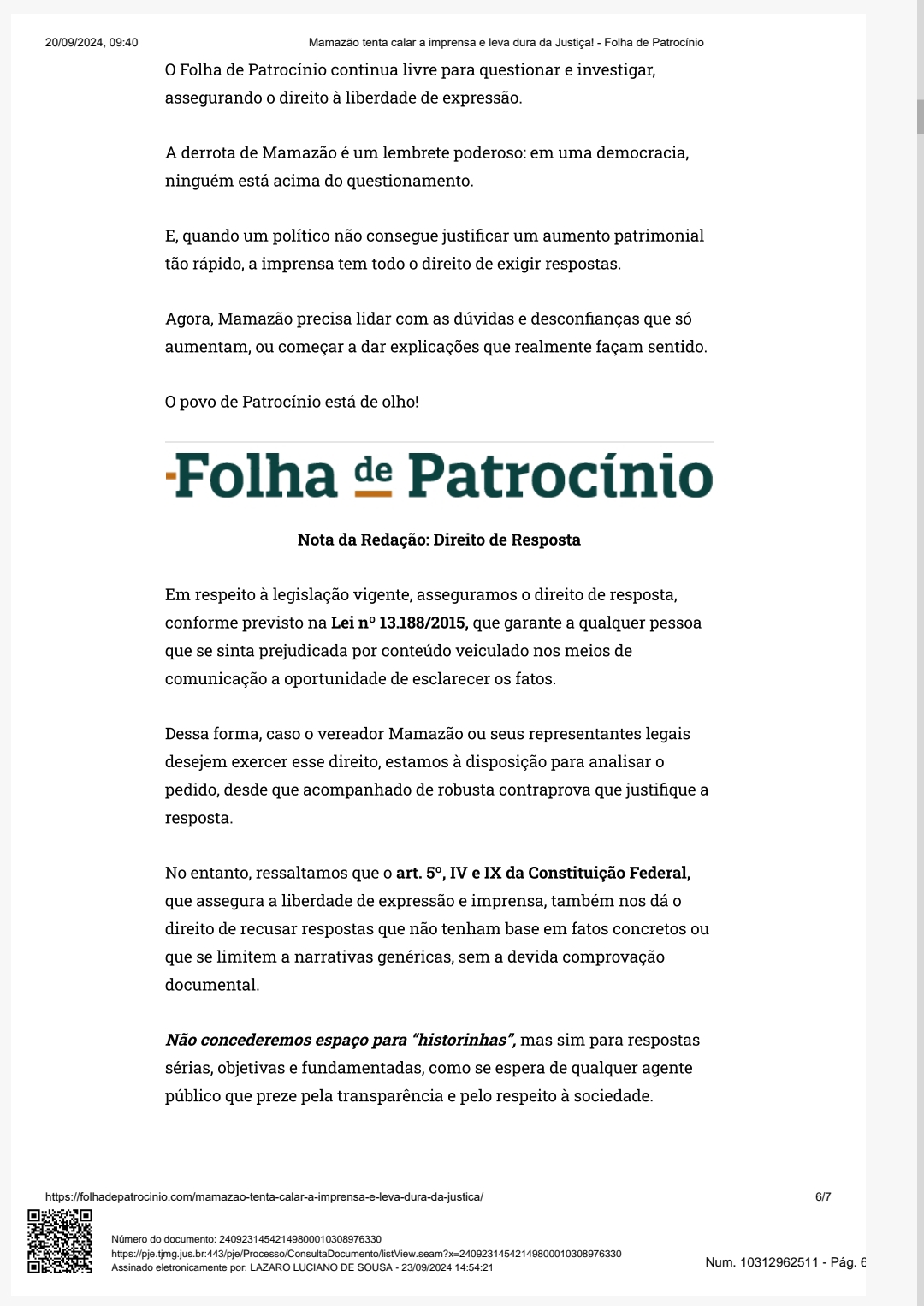 Com isso, o processo será arquivado. Essa é mais uma derrota de Mamazão nas disputas judiciais contra o Folha de Patrocínio.