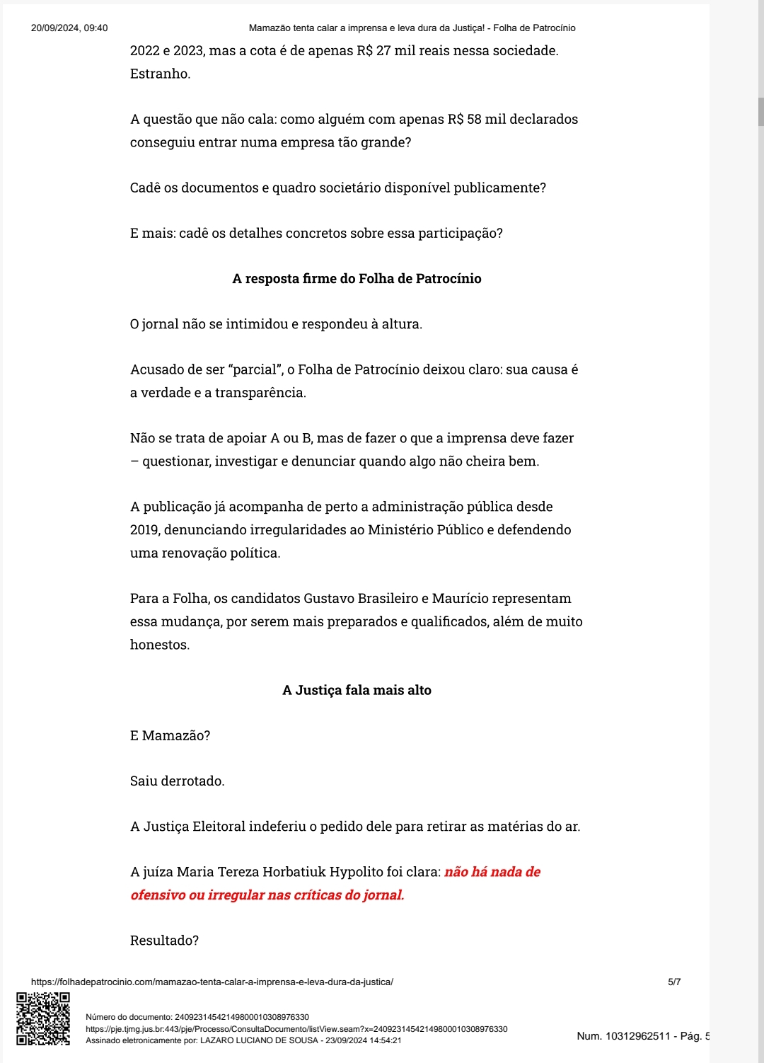 Mamazão perde mais um processo contra o Folha de Patrocínio