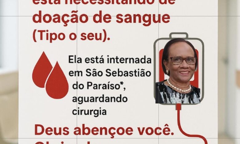 A moradora de Patrocínio, Roseli Raquel Bouzan, precisa com urgência de doações de sangue para realizar uma cirurgia em São Sebastião do Paraíso, onde está internada. Familiares e amigos organizam uma mobilização solidária para reunir doadores e garantir o sucesso do tratamento.