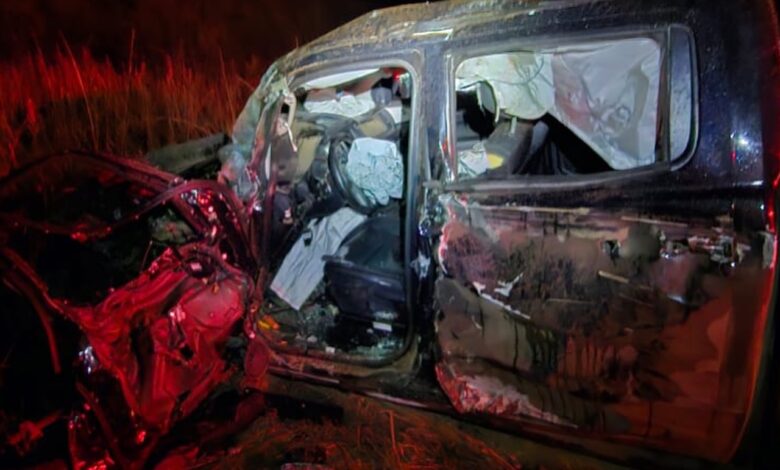 Motorista fica preso às ferragens após colisão entre caminhonete e carreta em estrada molhada perto de Patrocínio