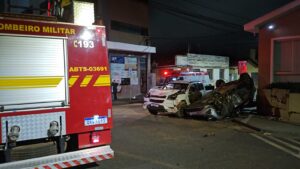 Mulher é resgatada após ficar presa às ferragens em capotamento no cruzamento da av. Coronel Elmiro do Nascimento com a rua Cassimiro Santos