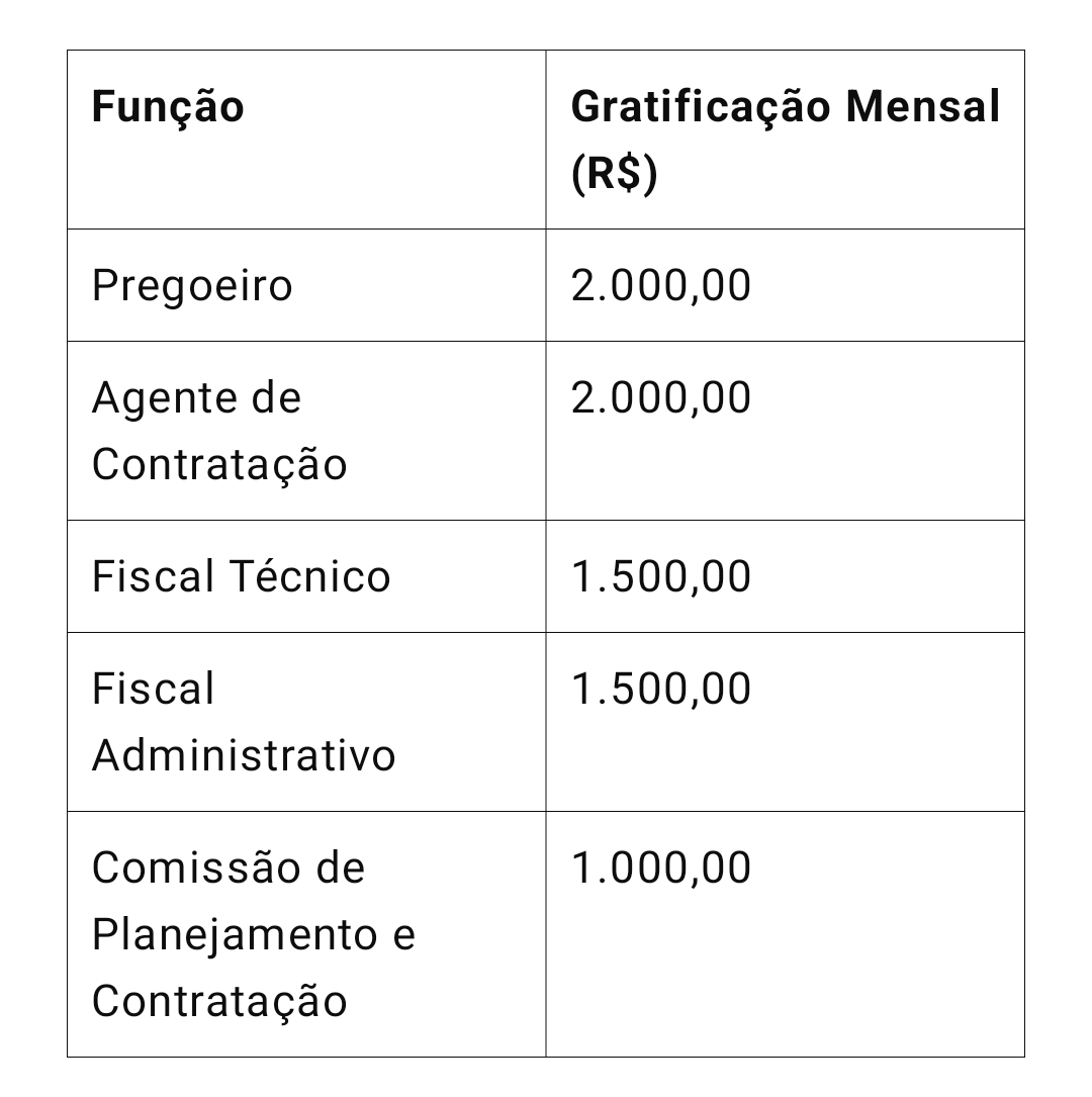 Medida reconhece a importância do trabalho de pregoeiros, fiscais e comissões, garantindo incentivo financeiro para funções estratégicas