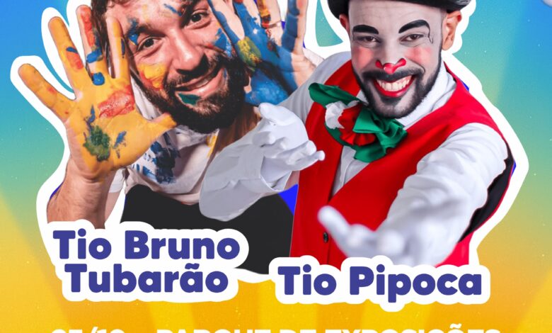 Entre as atrações, o público poderá interagir com Tio Bruno Tubarão e Tio Pipoca, que apresentam shows musicais e momentos lúdicos. O ponto alto do evento é a apresentação da dupla Patati Patatá (Os Originais), que promete encantar o público com toda a magia e alegria de seu espetáculo.