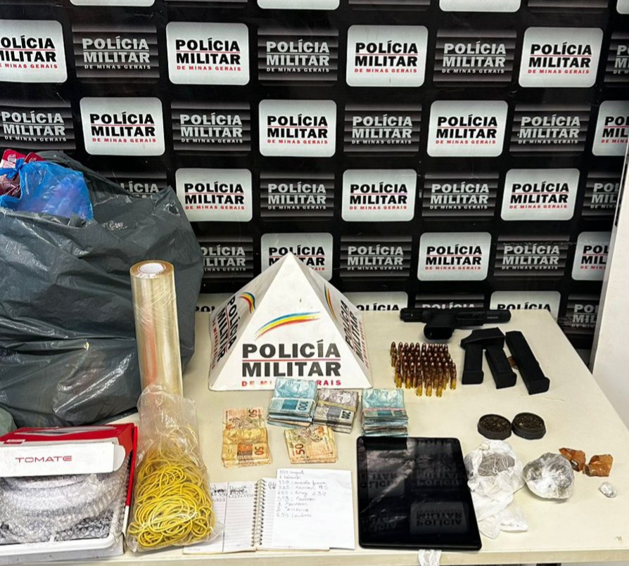 Além disso, foram apreendidos diversos itens ilícitos, incluindo R$ 31.750,00 em dinheiro, uma pistola Glock, 67 munições de calibre 9 mm, três carregadores e outros materiais utilizados no comércio de drogas, como balanças de precisão e anotações sobre a venda de entorpecentes.