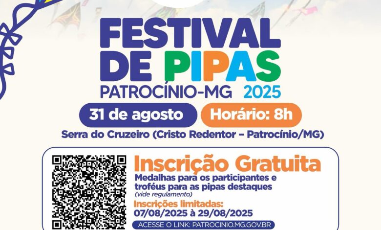 O céu de Patrocínio vai ganhar ainda mais cores e alegria no próximo dia 31 de agosto, com a realização do 5º Festival de Pipas, na Serra do Cruzeiro (Cristo Redentor).