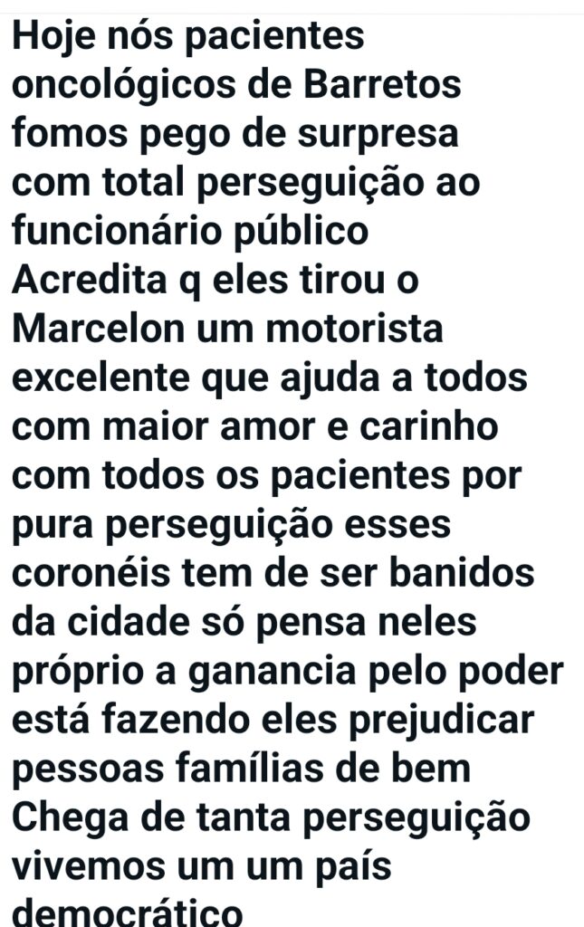Pacientes oncológicos de Patrocínio denunciam perseguição política a um motorista e sua esposa, alegando retaliação por não apoiarem candidato do governo. A troca do transporte semi-leito por micro-ônibus sem ventilação também gera revolta, intensificando críticas à gestão municipal.