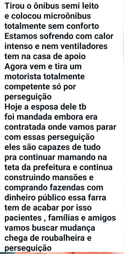 O calor insuportável na casa de apoio, a falta de ventiladores, e agora a demissão de um profissional querido… tudo isso parece pouca coisa para quem só pensa em continuar “mamando na teta” da prefeitura.
