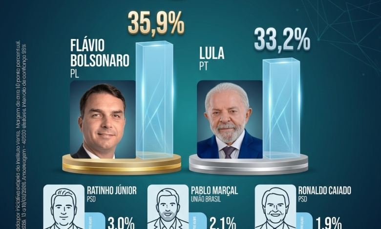 Pesquisa Veritá coloca Flávio Bolsonaro à frente de Lula na corrida presidencial de 2026