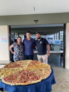 Em vídeos e fotos, Tavinho Di Roma Express detalhou o processo de produção da monumental pizza, destacando seu envolvimento com a comunidade local. Confira: