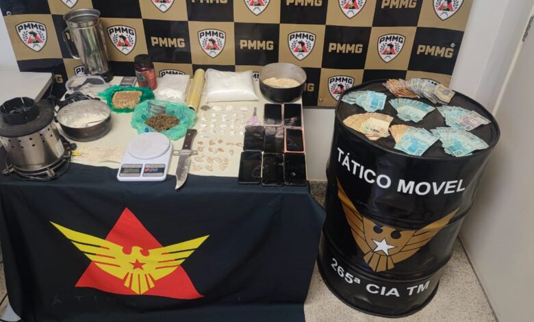 A operação teve início após monitoramento de um veículo Fiat Toro, abordado na MG-230, na entrada da cidade. Dentro do automóvel, os policiais encontraram drogas prontas para venda.