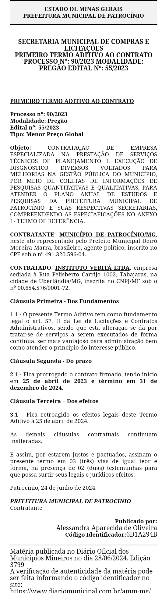 A Prefeitura de Patrocínio acaba de firmar um aditivo de contrato com o Instituto Veritá, empresa de Uberlândia especializada em pesquisas qualitativas e quantitativas.