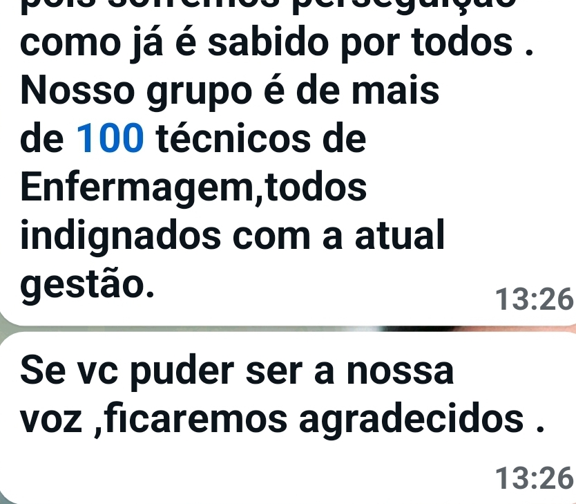 A cobrança por parte dos enfermeiros é justa e urgente: o cumprimento do piso salarial nacional, garantido por lei, e o fim das práticas de perseguição e descontos injustificados.
