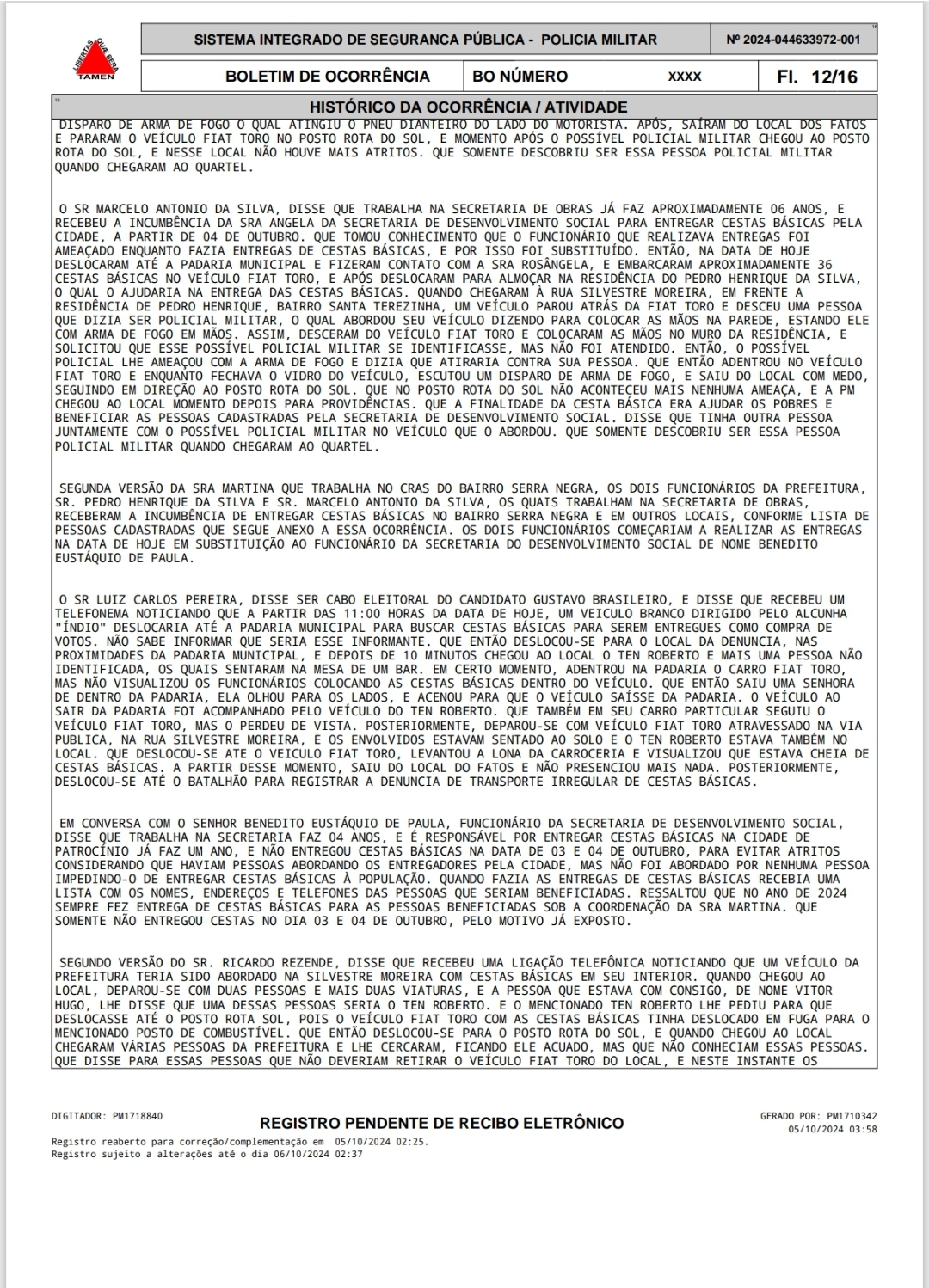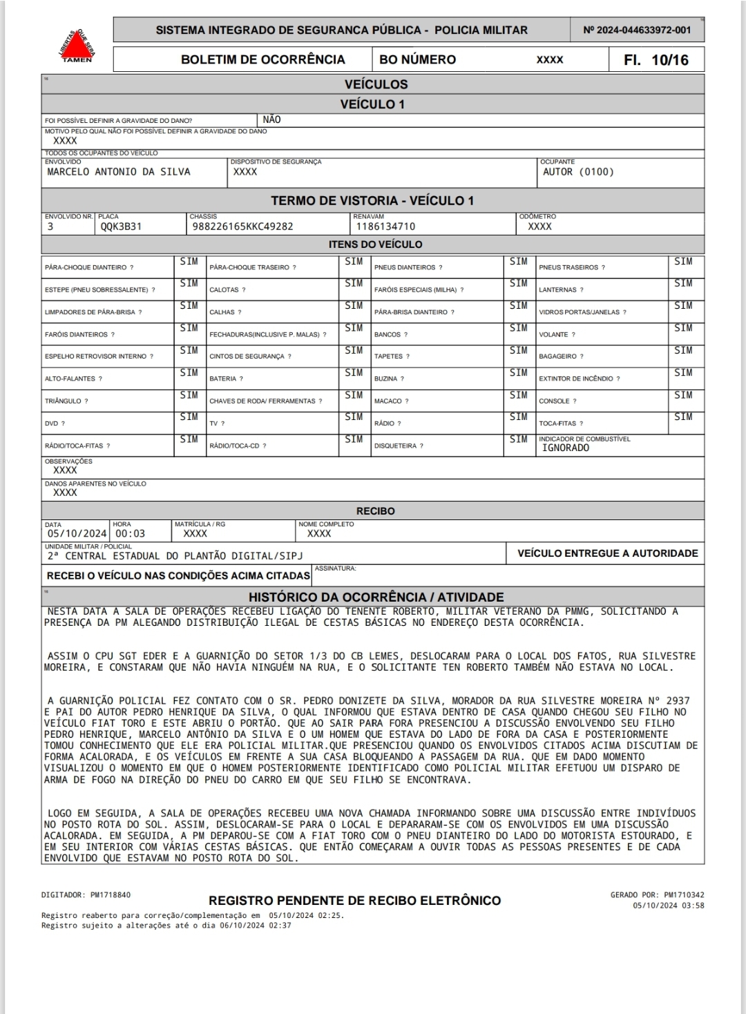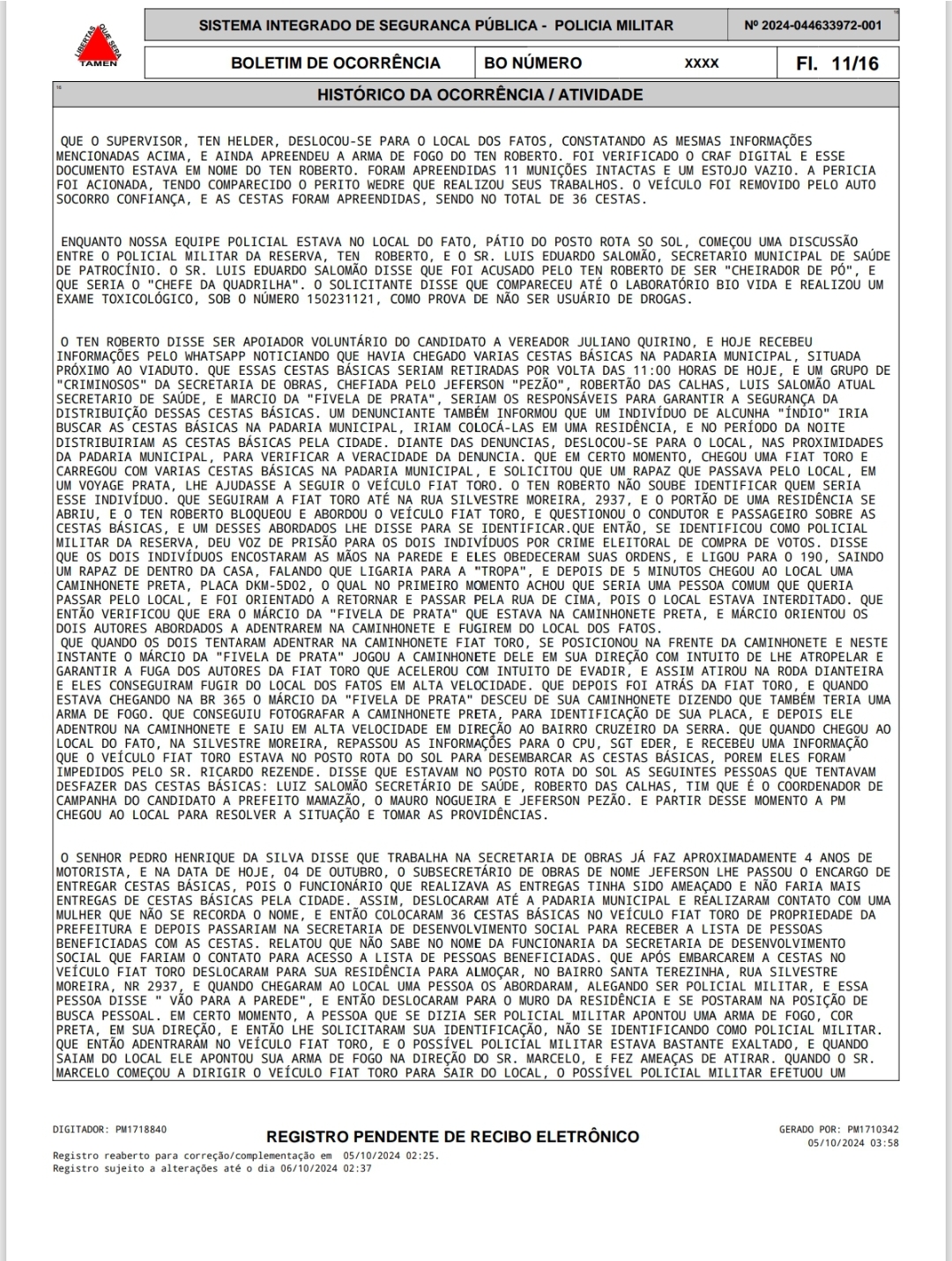 Outro ponto crítico foi a divulgação antecipada do boletim de ocorrência (REDS), que só foi liberado na madrugada de sábado, enquanto já circulavam informações de que o documento estaria disponível antes desse prazo.