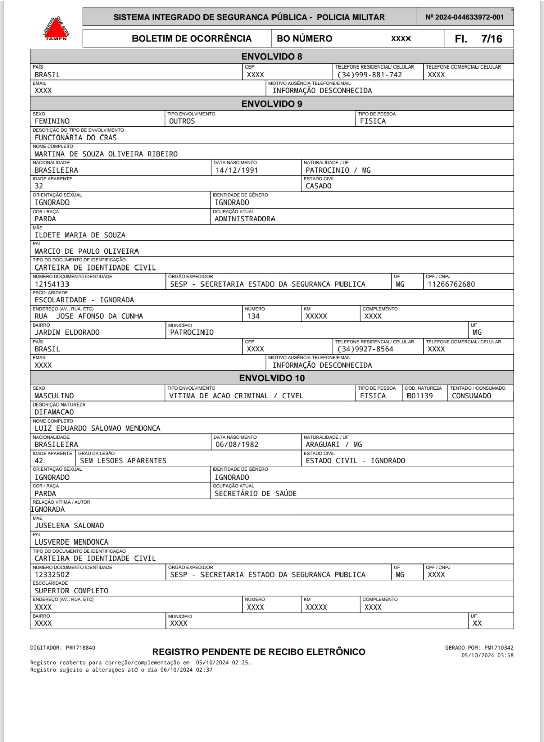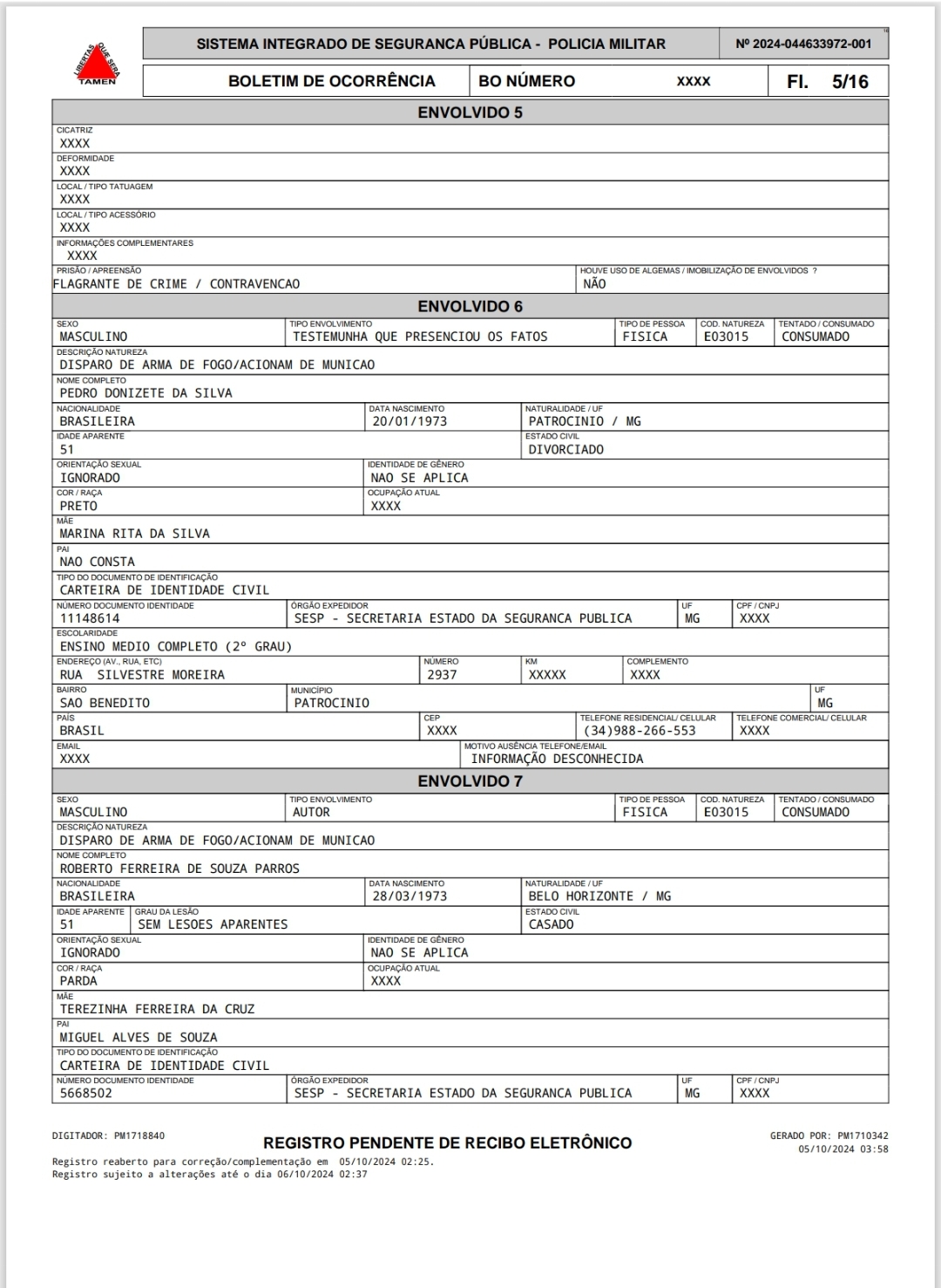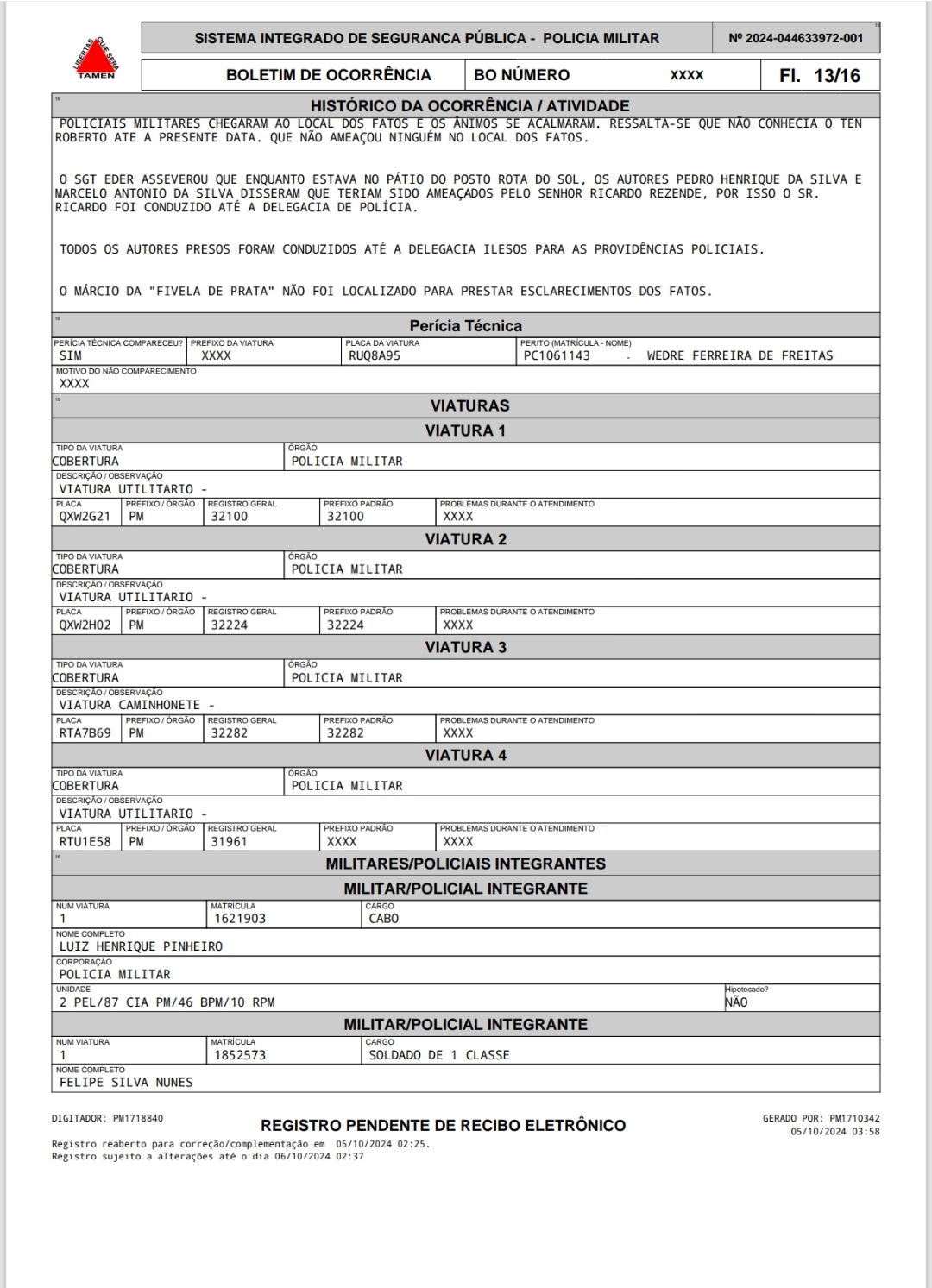 Outro ponto crítico foi a divulgação antecipada do boletim de ocorrência (REDS), que só foi liberado na madrugada de sábado, enquanto já circulavam informações de que o documento estaria disponível antes desse prazo.