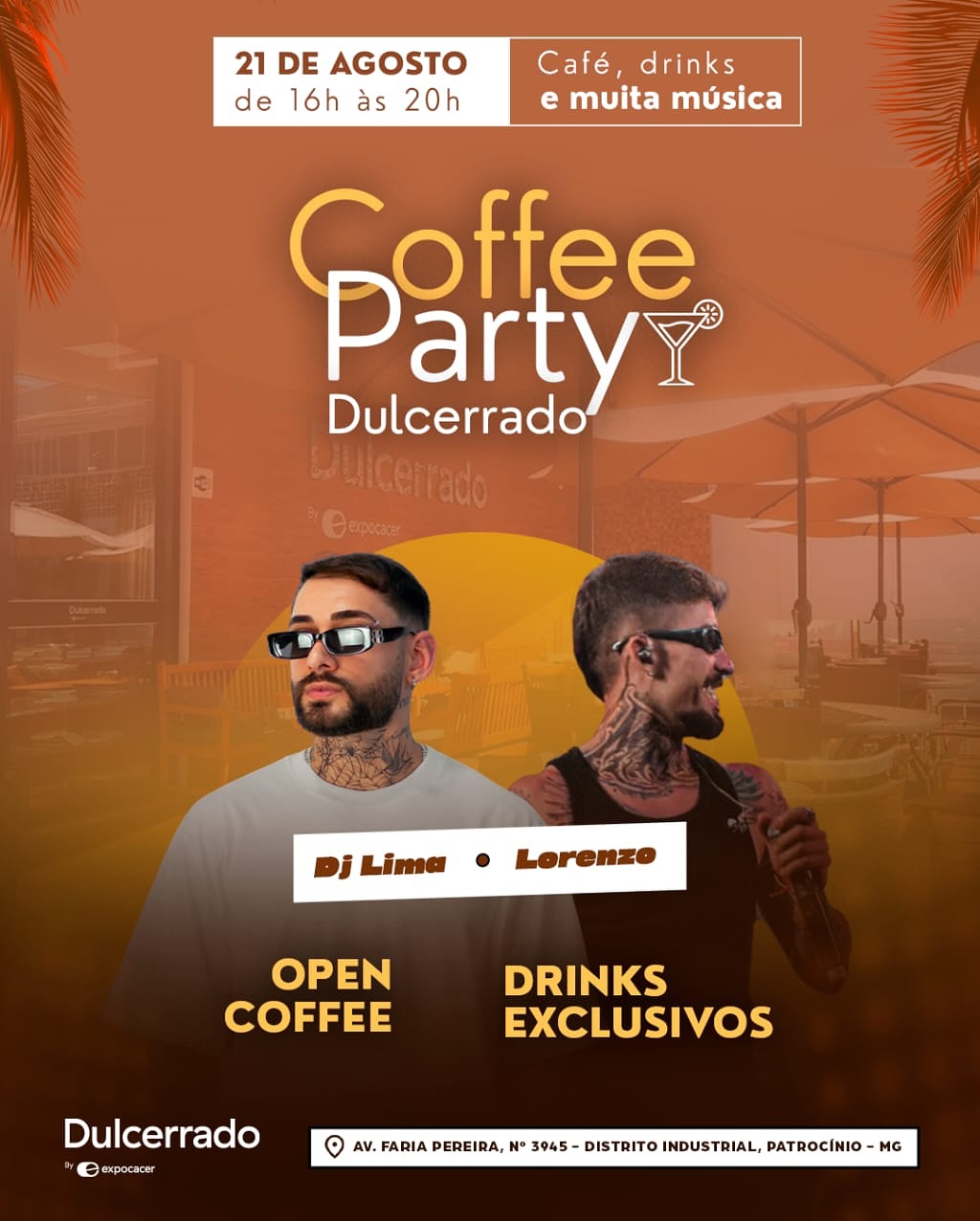 O Dulcerrado Coffee Party será realizado em breve e promete movimentar a cena cultural e gastronômica da região, unindo música, experiências sensoriais e, claro, muito café de qualidade.