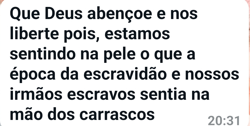 “Estamos sentindo na pele o que nossos irmãos escravos sentiam nas mãos dos carrascos”, diz o funcionário, comparando a perseguição atual com os horrores do passado.