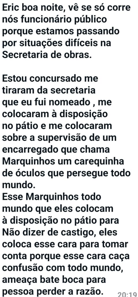 Denúncias de perseguições políticas estão surgindo de forma alarmante, criando um verdadeiro clima de terror na administração municipal.